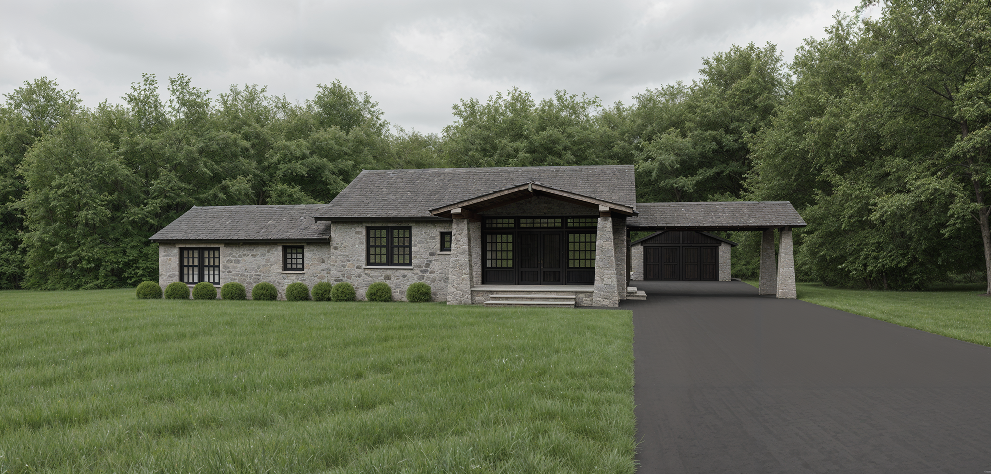 a manicured lawn simple flowering bushes