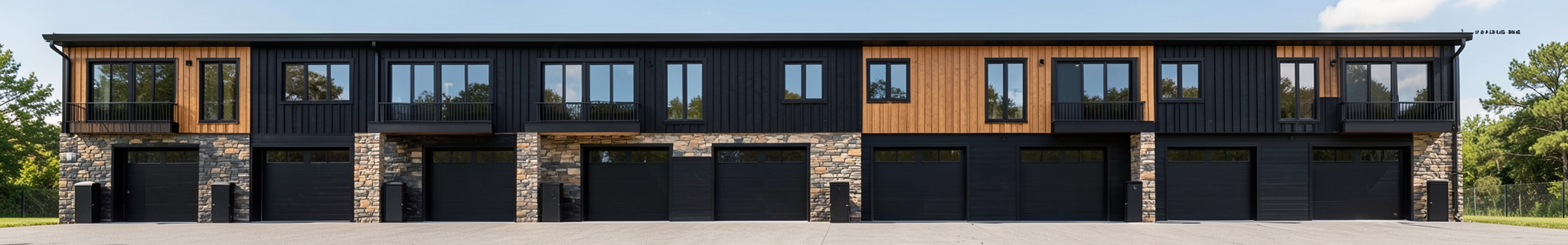 black steel siding and wood look siding up top