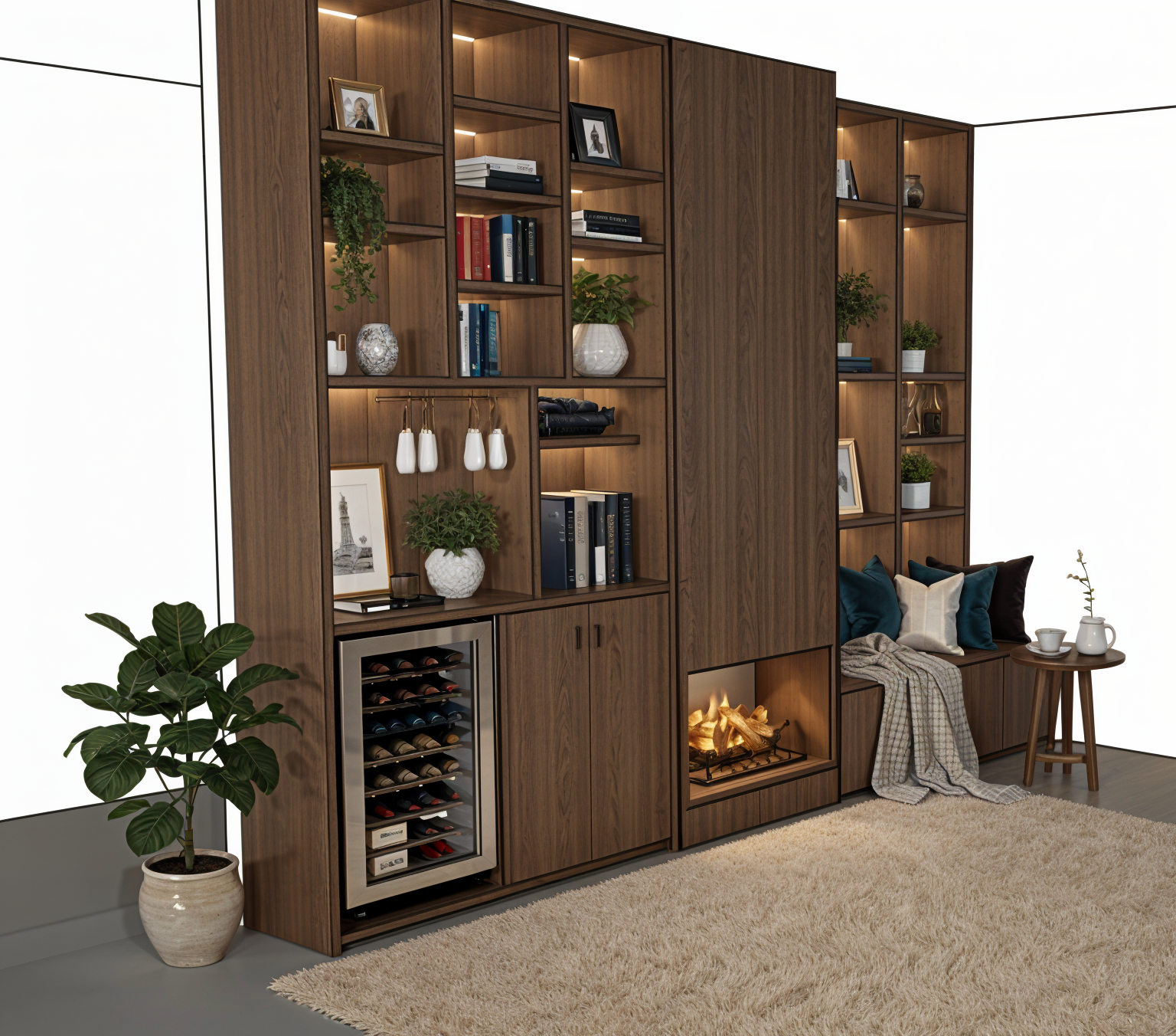 nordic interior shot night time cozy architecture