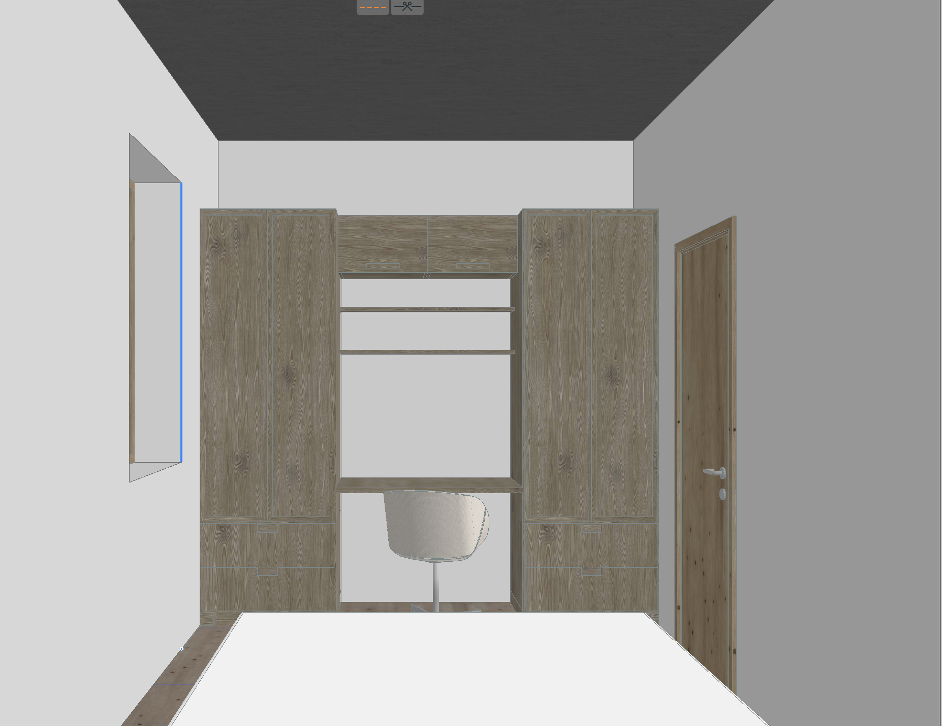 add lights and a laptop and make the ceiling white also the foot of the bed is visible in the picture so add a comforter
