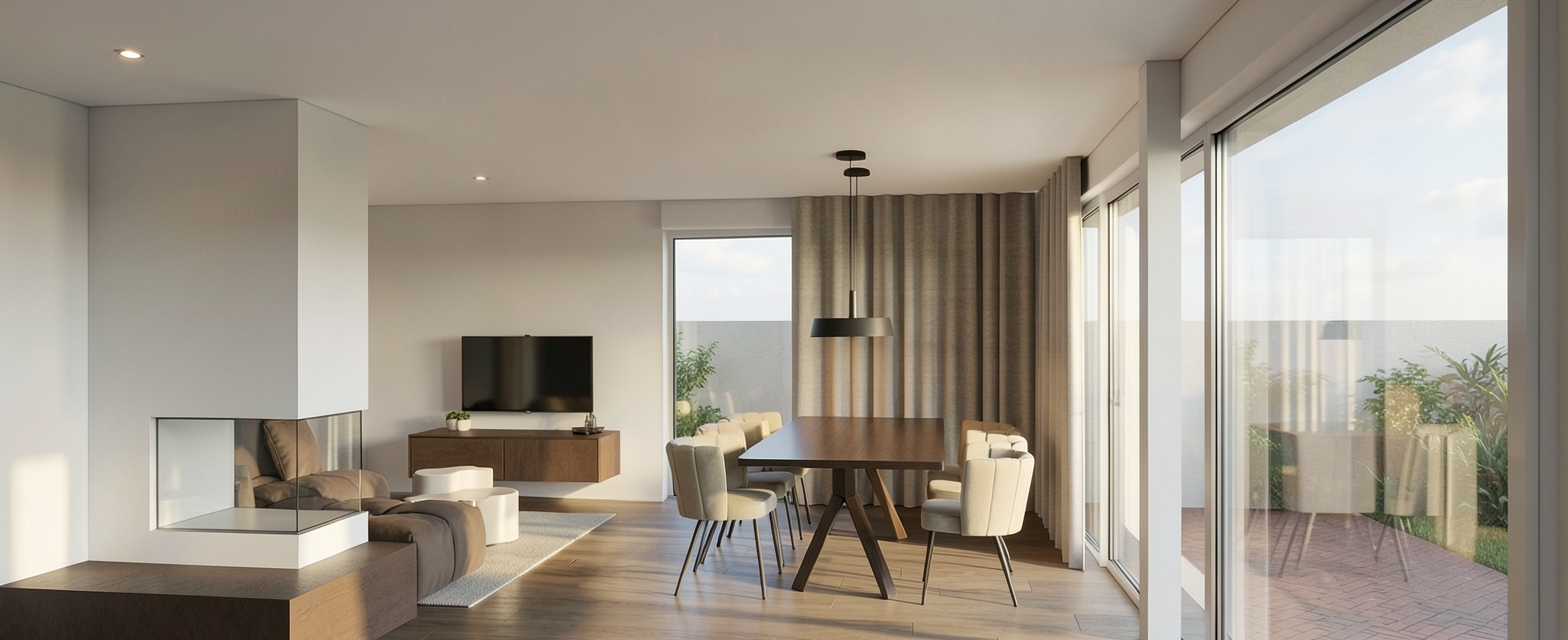 create a hyper realistic visual of this house do not change the design or house proportions make the driveway a cream resin finish and add classy wild planting flowers to the front garden and add cut stripes into the grass where possible add trees and planting in the background show the back brick on edge detail as per the original image dont change the angle of the camera make the red splayed brick headers a redish orange colour and make the balck brick on edge in the band compliment the rest of the bricks