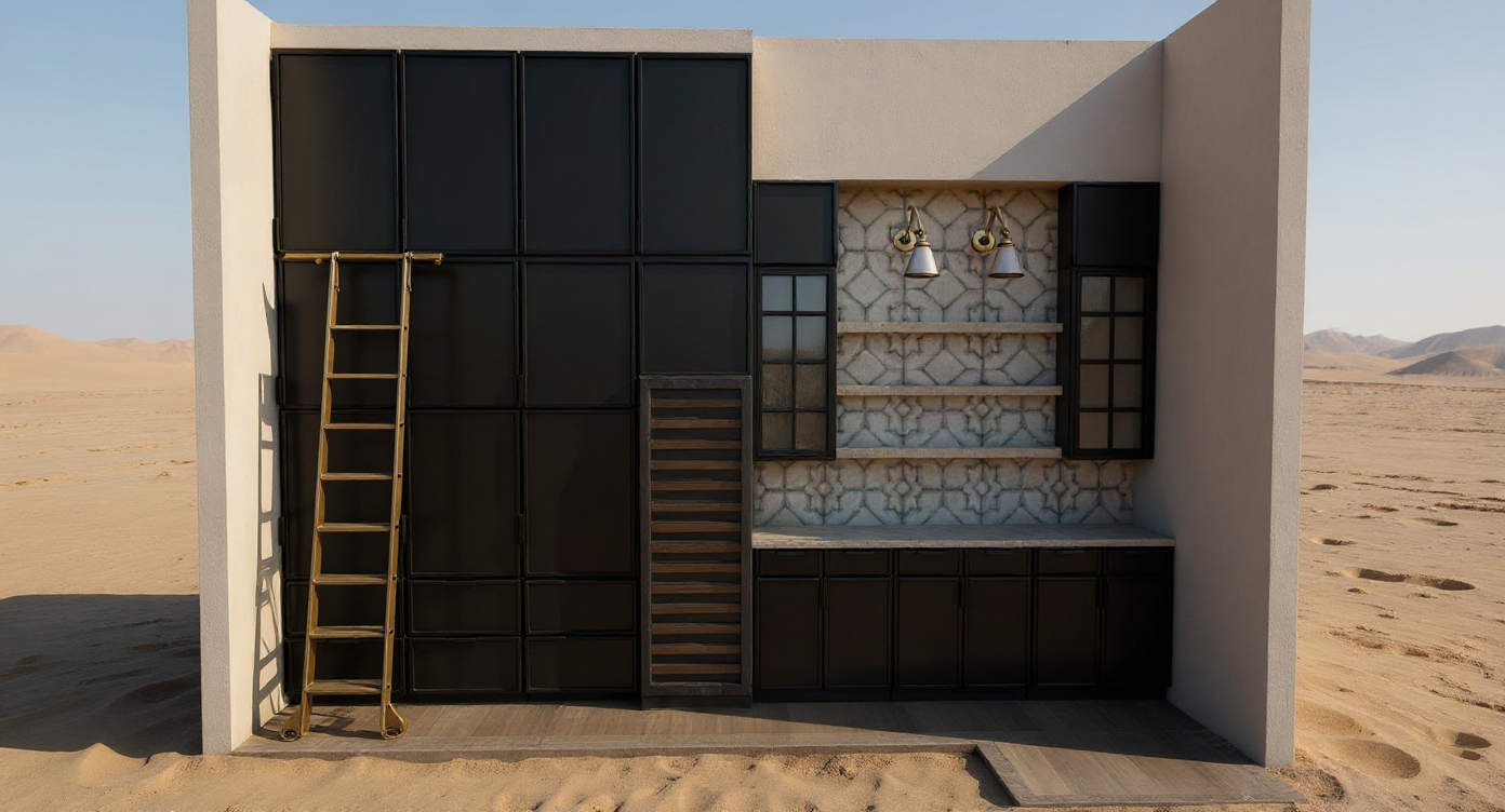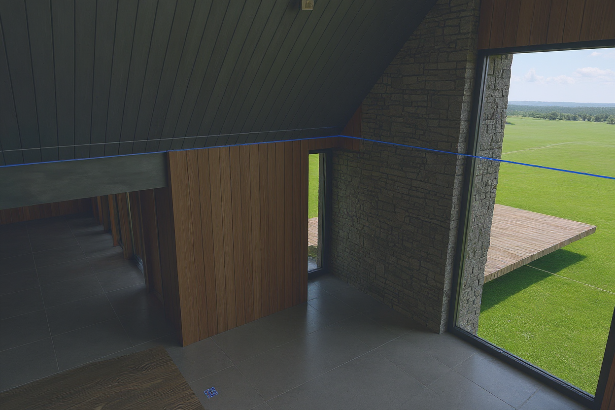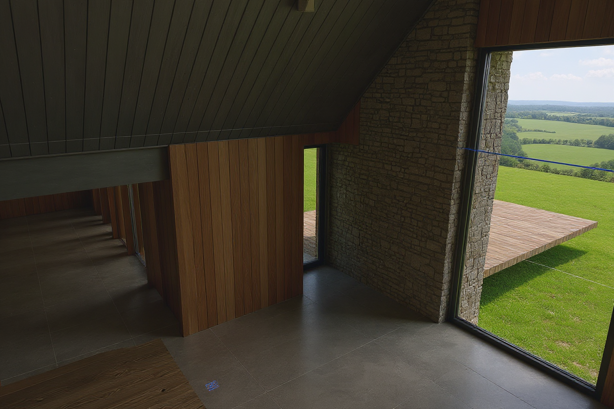 this is a maisonetter with front side being curved almost cylyndrical while retaining the model as is please increase exposure of the scene add indoor warm lighting very very light yellow add some exterior wall lights improve texture of all surfaces
