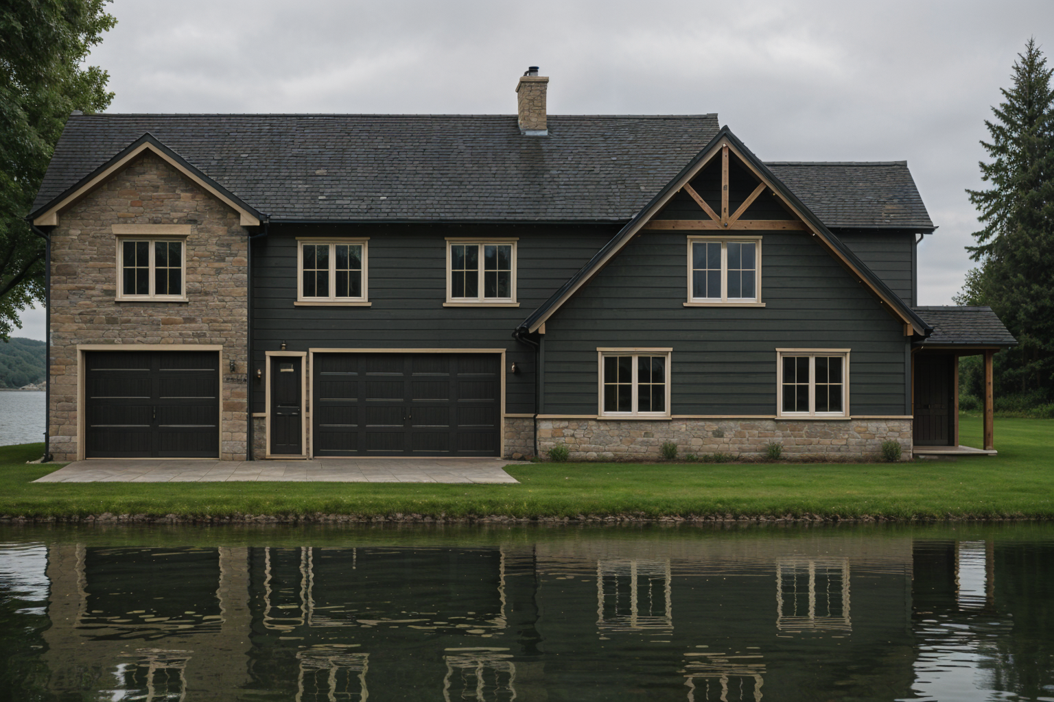 add a wood pergola accent above the middle garage