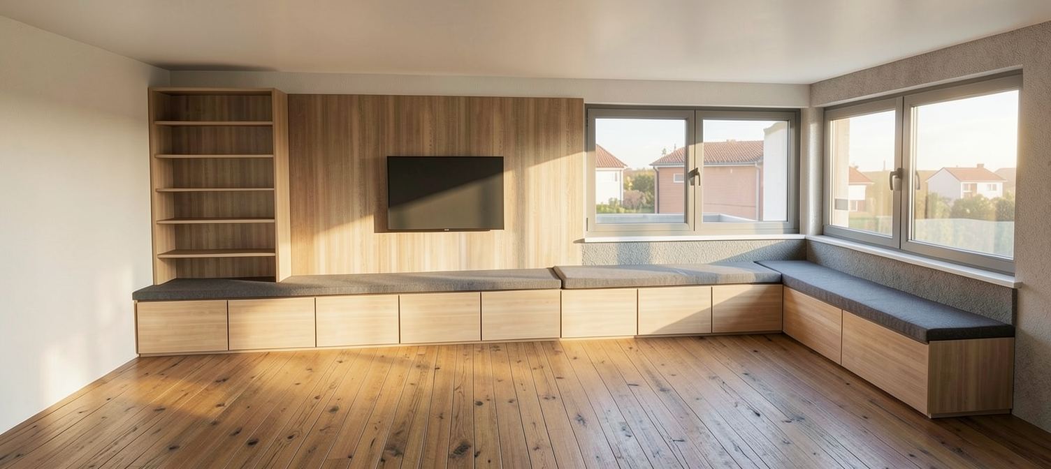 create ultra realistic images without changing any structure shape design or materials do not resize jpegs beige wood vinyl flooring off white walls beige wall panels white marble top table gold frame og mirror abstract wallpaper on panel wooden shelf flat ceiling add indirect light at frame mirror and shelf