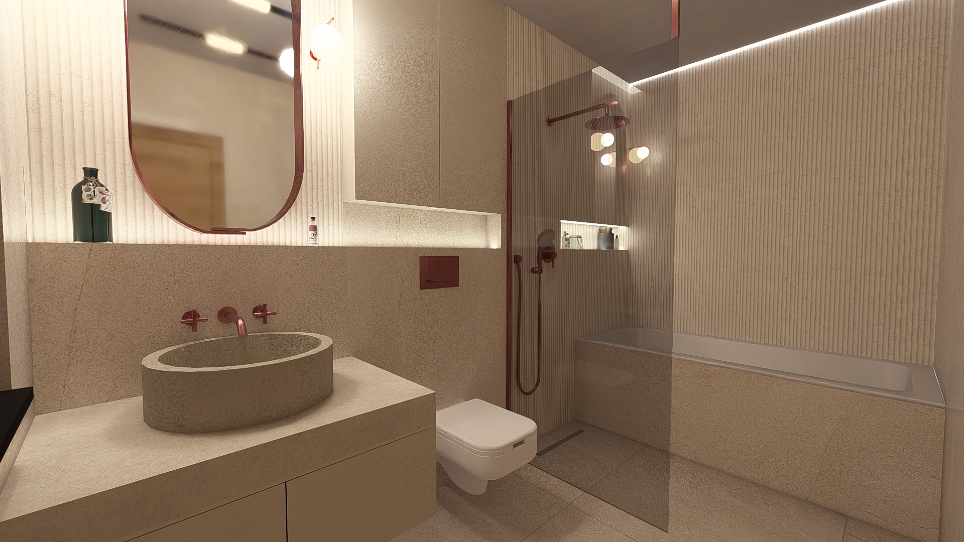 interior shot change the rosegold saniter to metal gun change the stone sink to a sunk sink