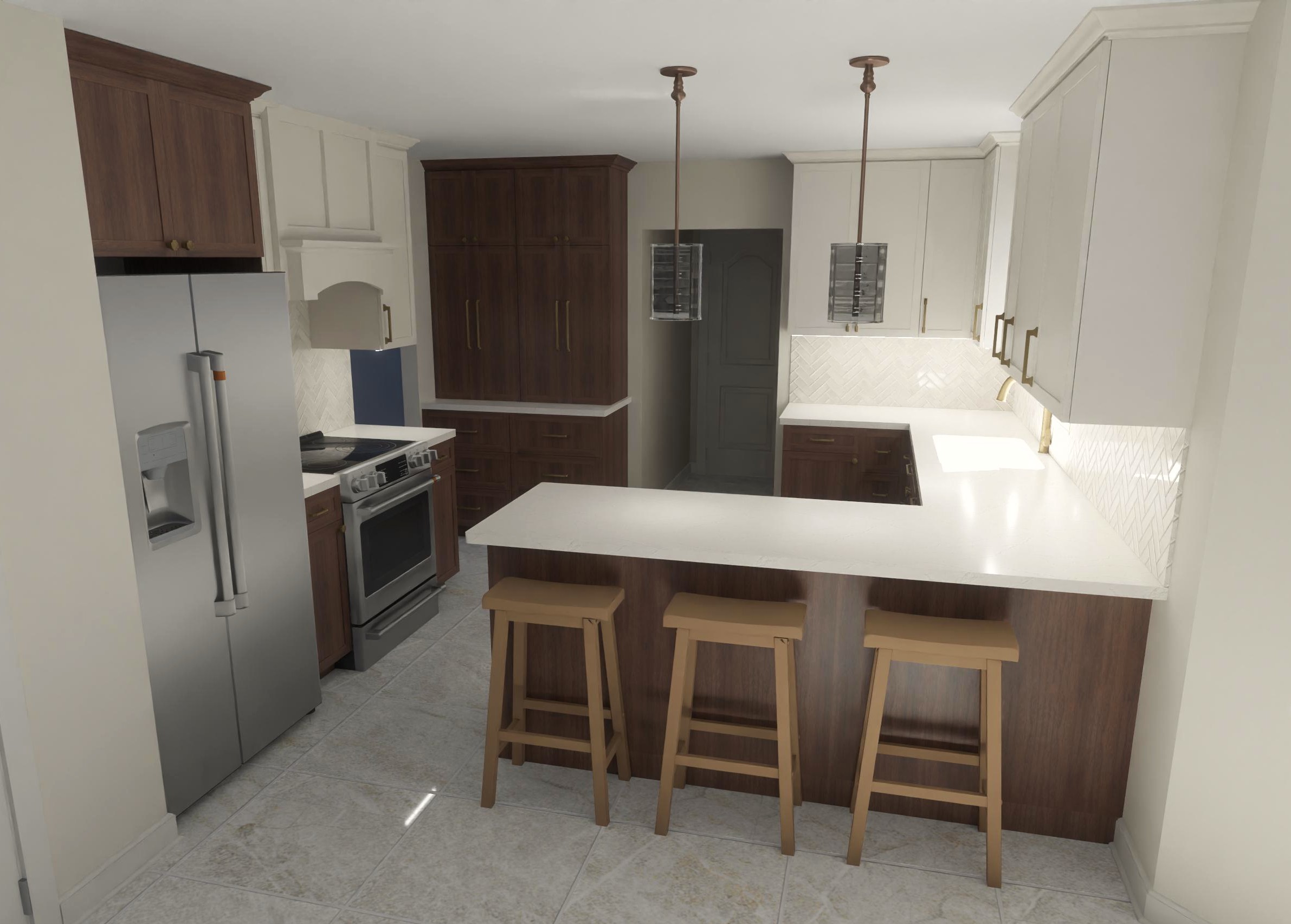 lightly accessorize this kitchen keeping counter tops fairly clear make the lights above the island appear on and keep the white herringbone backsplash