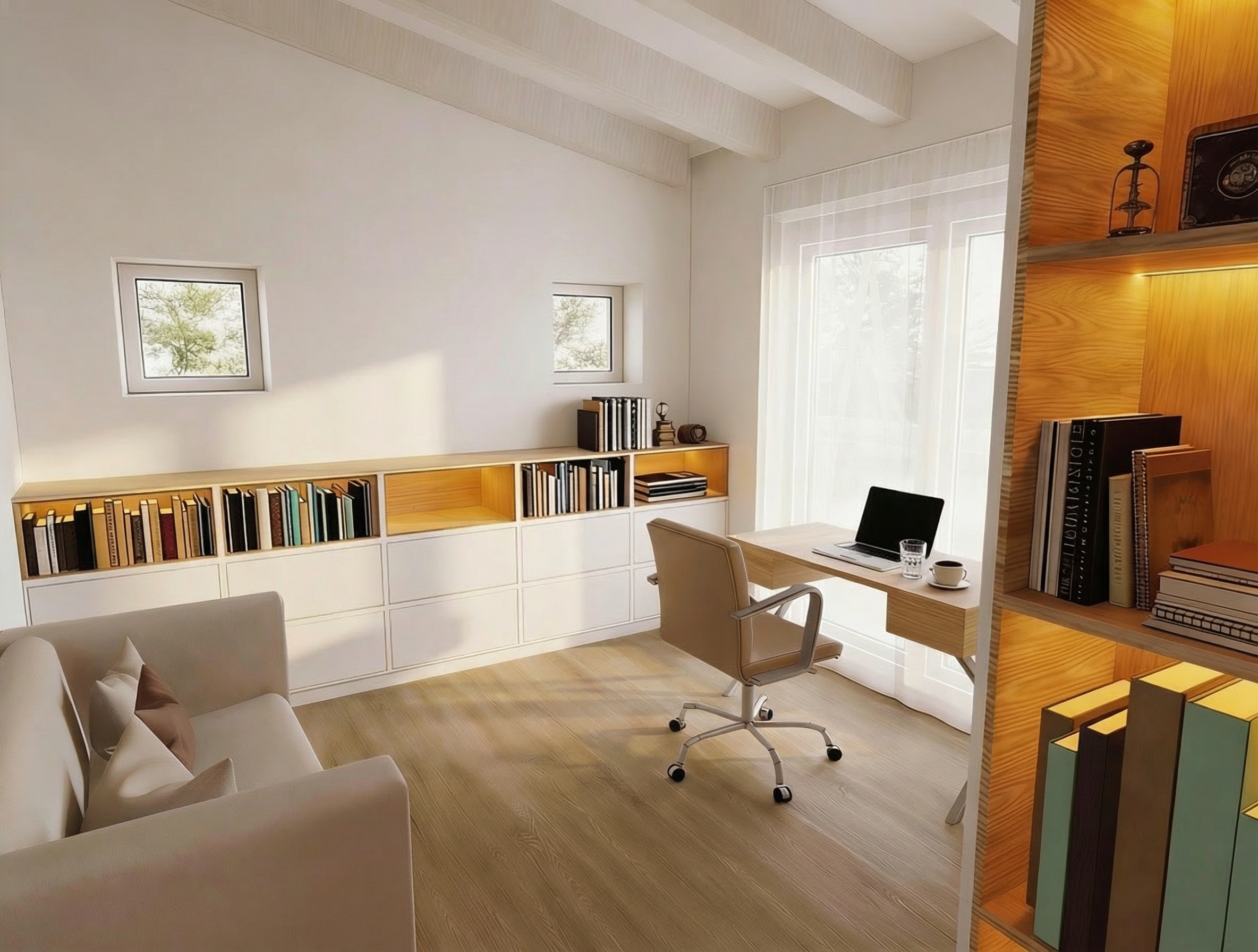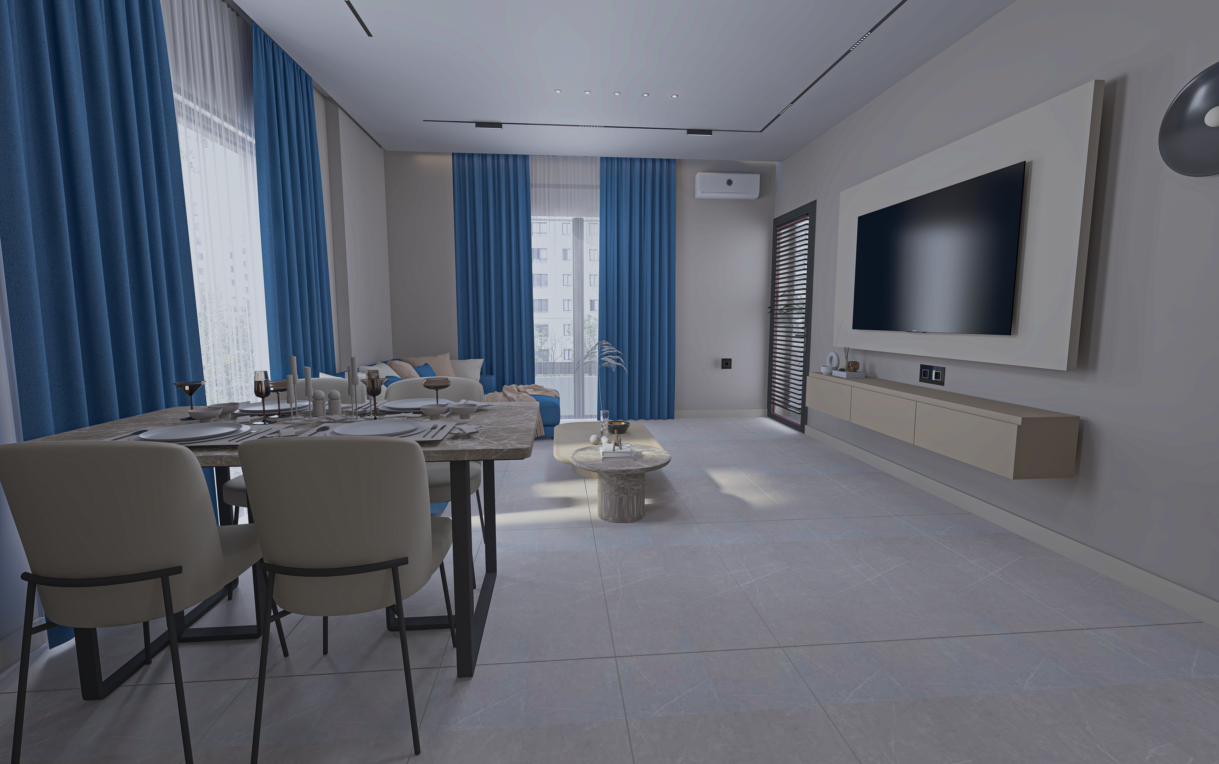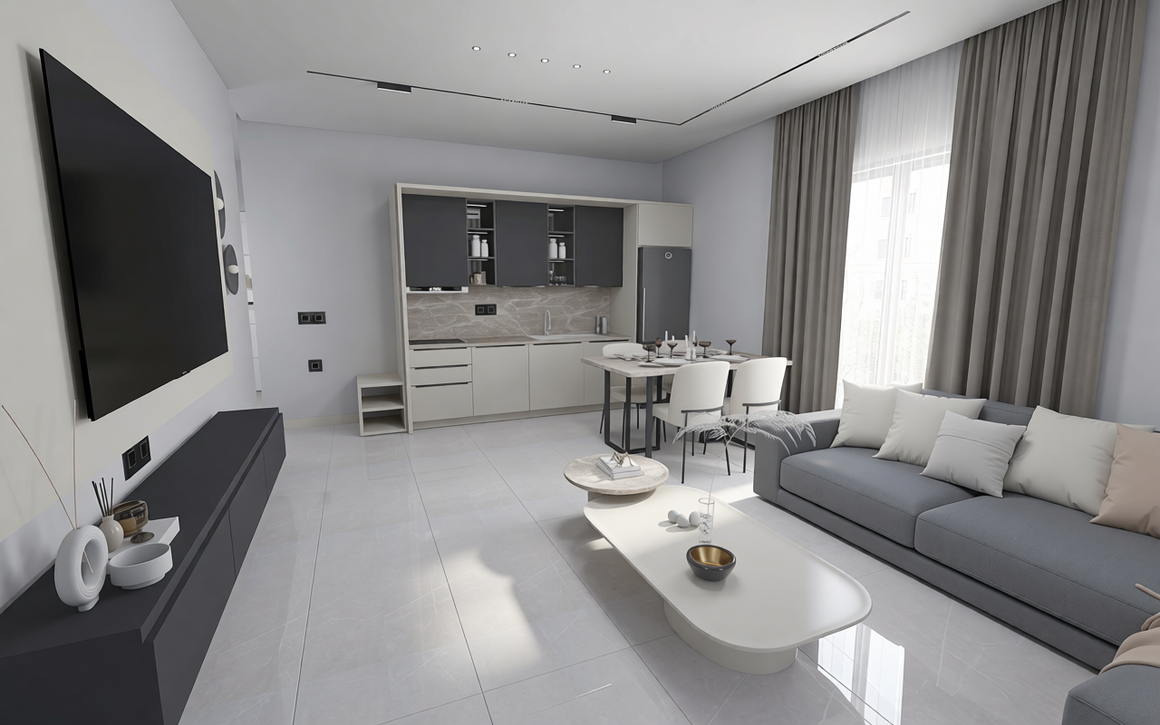 improve the image quality and make it more realistic take into account the 4000 kelvin daylight interior lighting don t change anything in the scene in terms of color or design only change the color of the curtains and seats to a gray tone