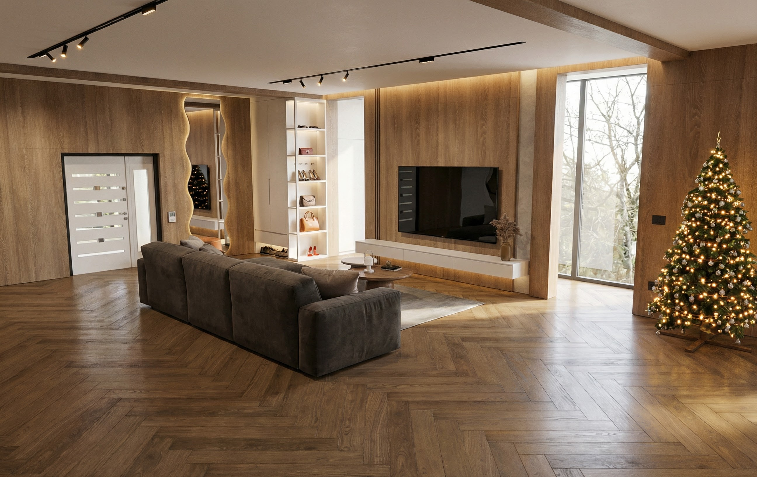 white oak floor white oak cabinets with brass hardware carrara marble countertop