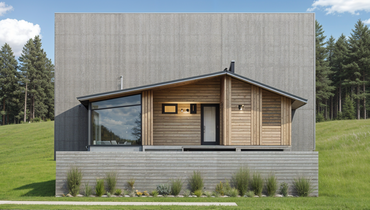 wide angle shot create a night visualization with this photo do not change anything else that exists in the photo architecture