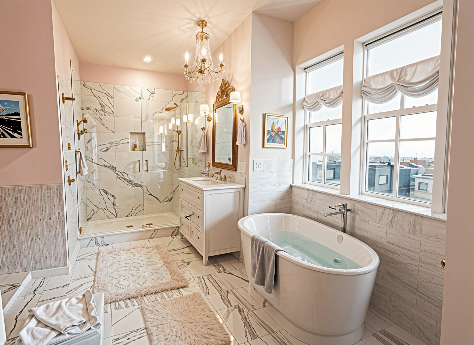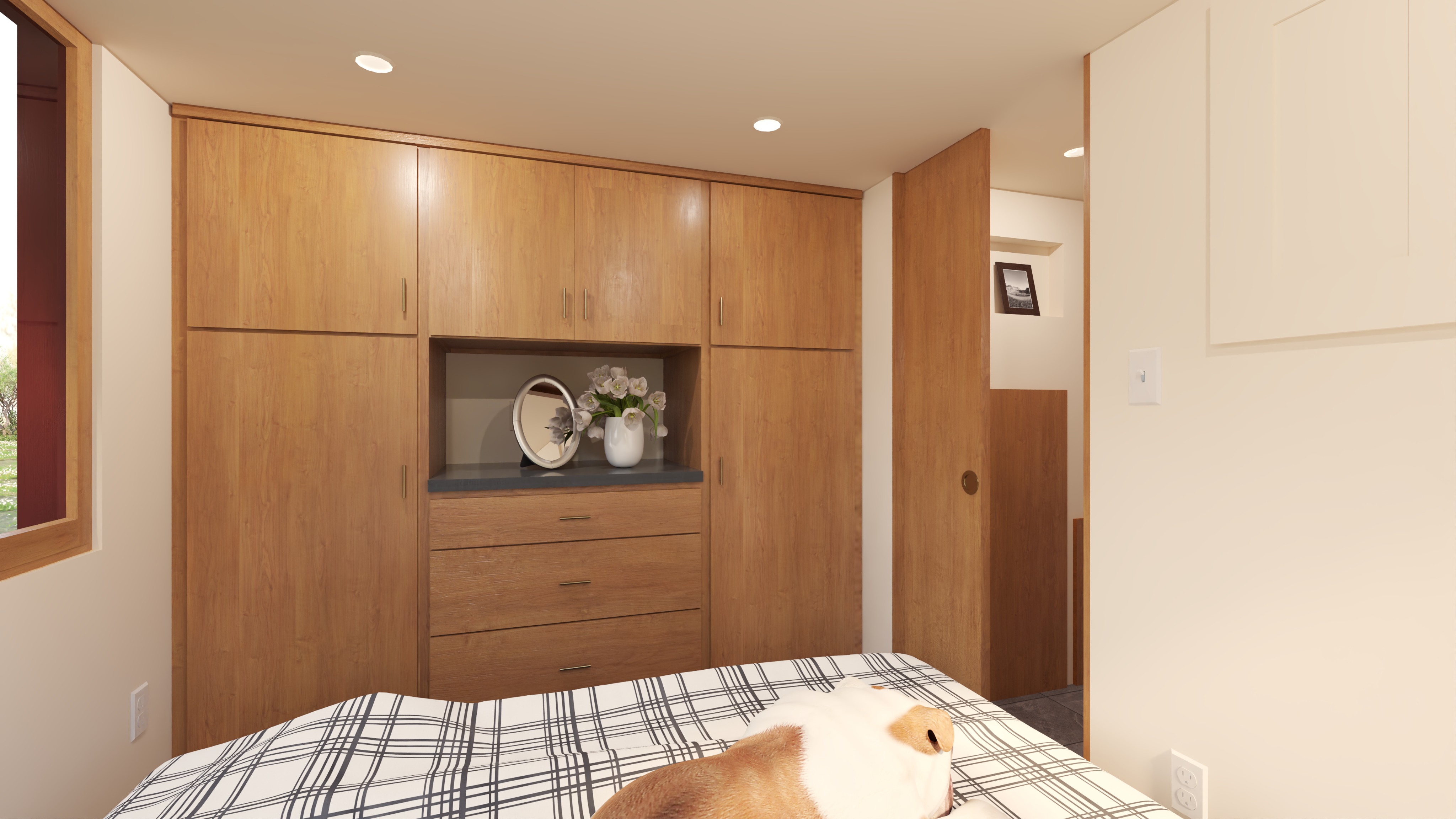 photorealistic interior architectural photography warm natural daylight under cabinet lighting and illuminated can lights in the ceiling soft directional light with realistic shadow falloff and gentle contrast bright but warm atmosphere realistic global illumination with subtle ambient occlusion in corners and at material transitions dslr with a 35mm lens eye level perspective professional architectural composition and framing and realistic depth slight depth of field foreground and midground in focus background softly flailing off physically based materials throughout with enhanced texture detail natural surface variation and subtle imperfections with realistic sheen high quality windows with realistic thickness subtle reflections of the interior soft exterior reflections and accurate light transmission windows feel transparent exterior visible through windows feels real and grounded with natural daylight realistic trees and landscape interacting with the light warm color temperature balanced with natural daylight soft highlights realistic shadows gentle contrast subtle camera noise natural exposure not overly sharp soften corners and edges professional photography style do not change the geometry of the image remove the people from the image