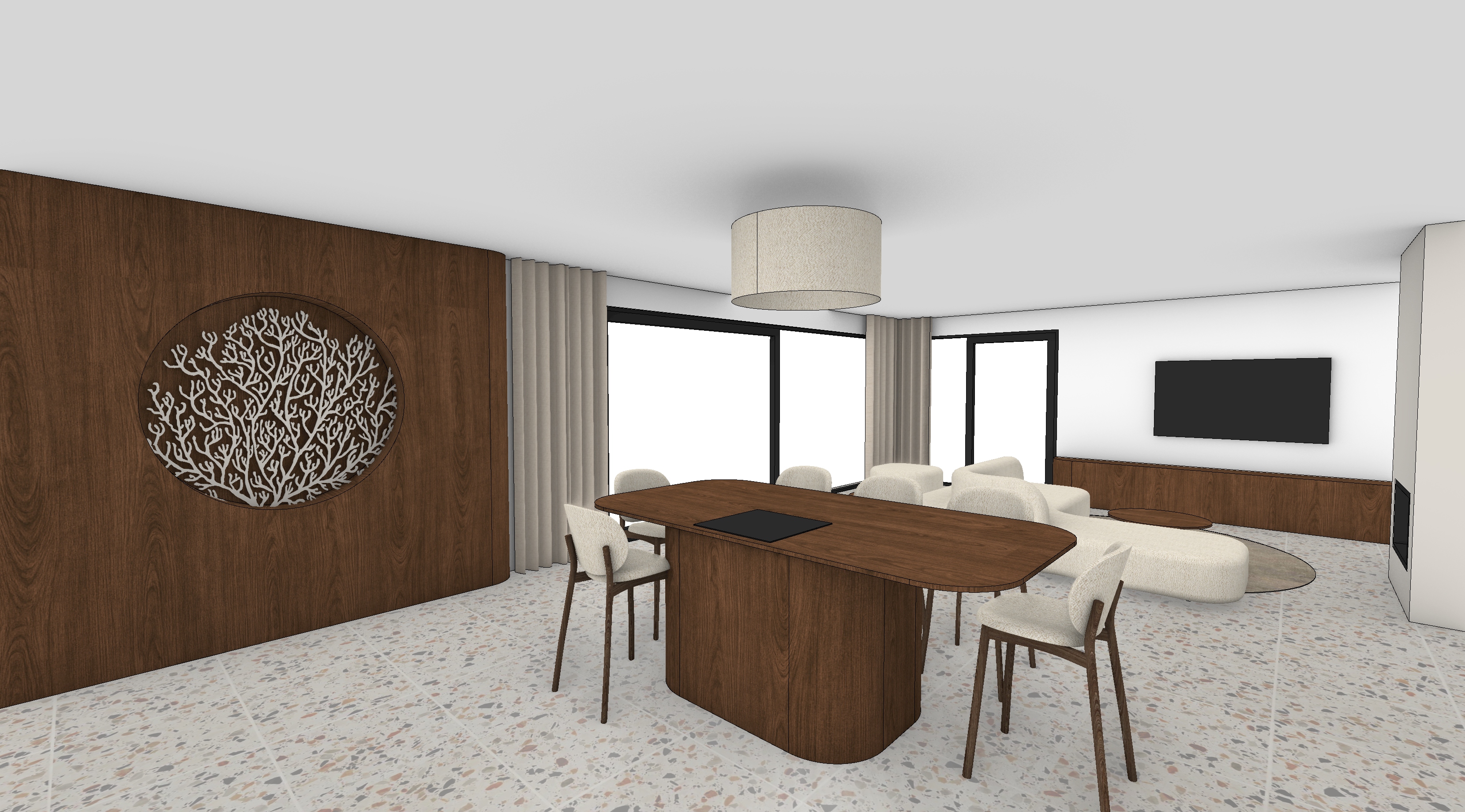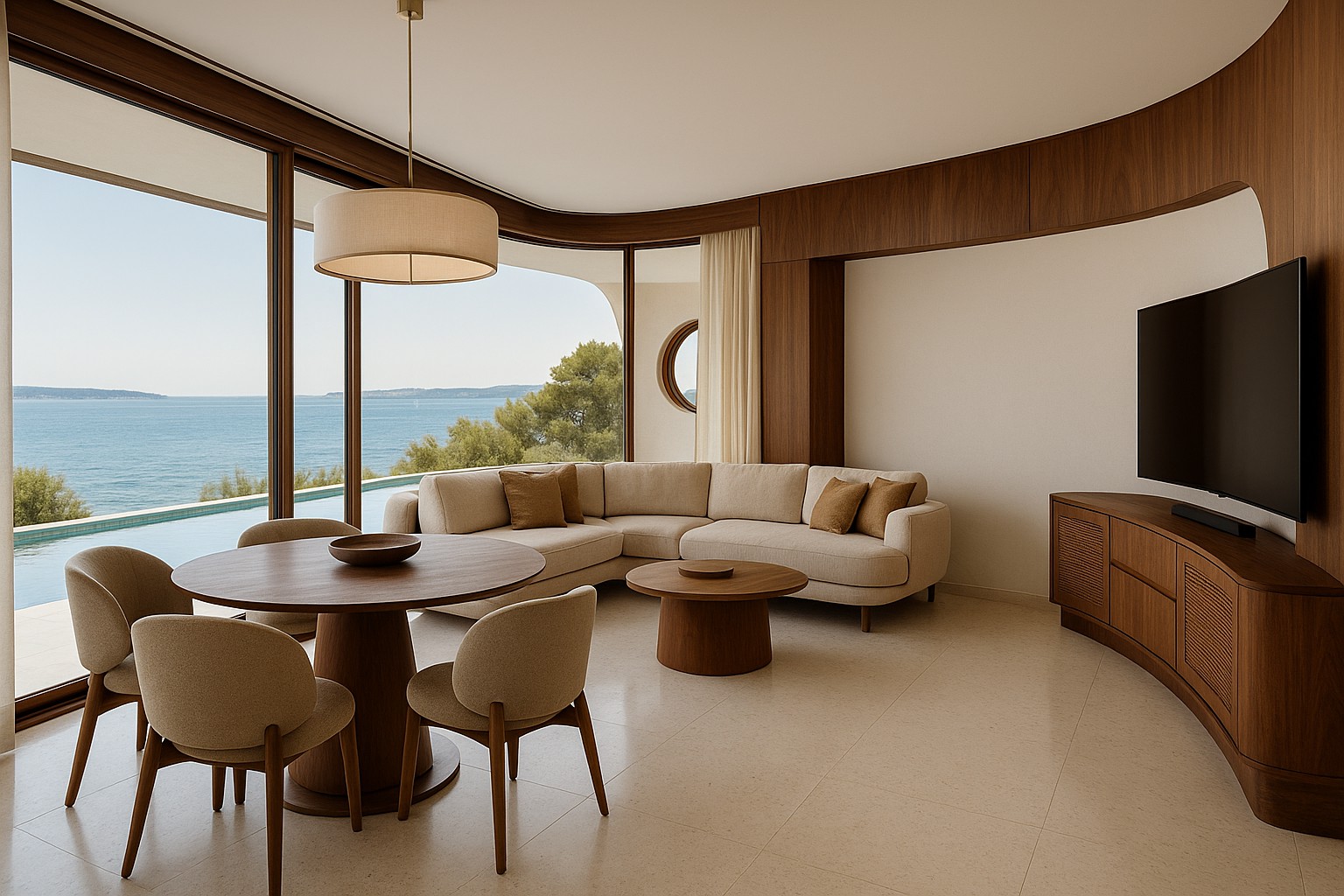 interior shot sea landscape panorama behind the large window