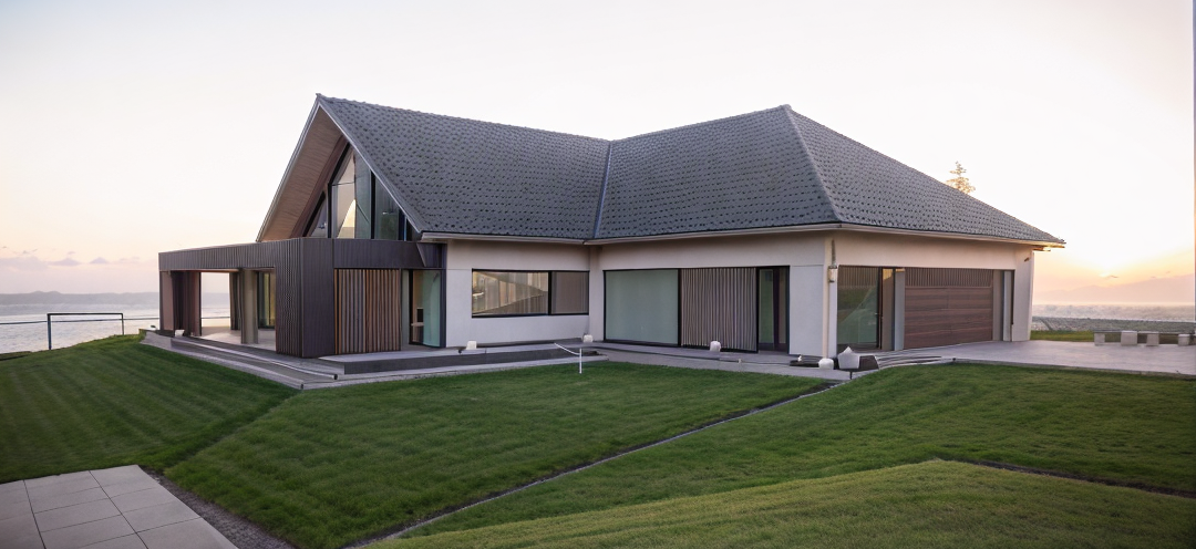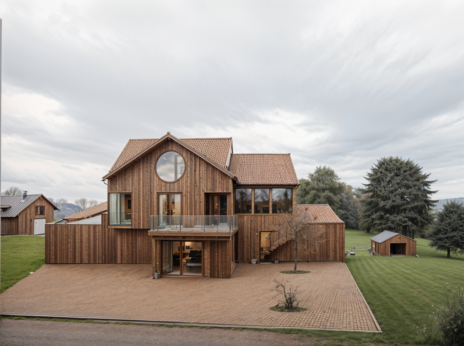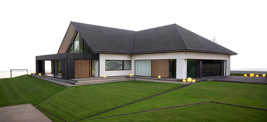 exterior shot house in the forest at night with light architecture