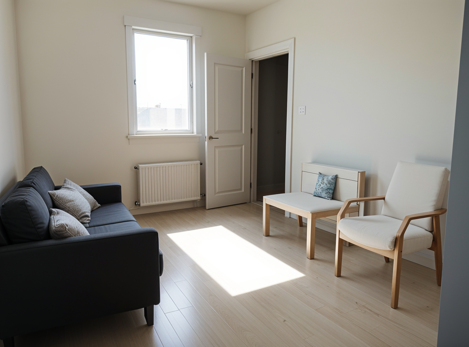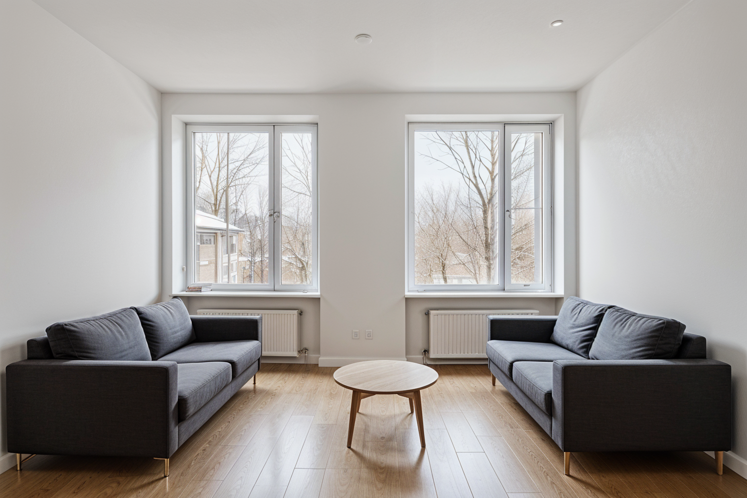 modernist exterior shot render a beautiful modern house with a metal roof in sleek charcoal gray adding depth and contrast for the walls use a soft cream white stucco finish for a clean and elegant look the windows are framed with classic black trim to enhance the contemporary aesthetic add warm glowing lights inside to create an inviting atmosphere in the garden include lush green shrubbery with pops of colorful flowers in hues of lavender and white set the scene under a clear twilight sky with subtle pastel pink and orange hues giving it a serene and dreamy ambiance architecture