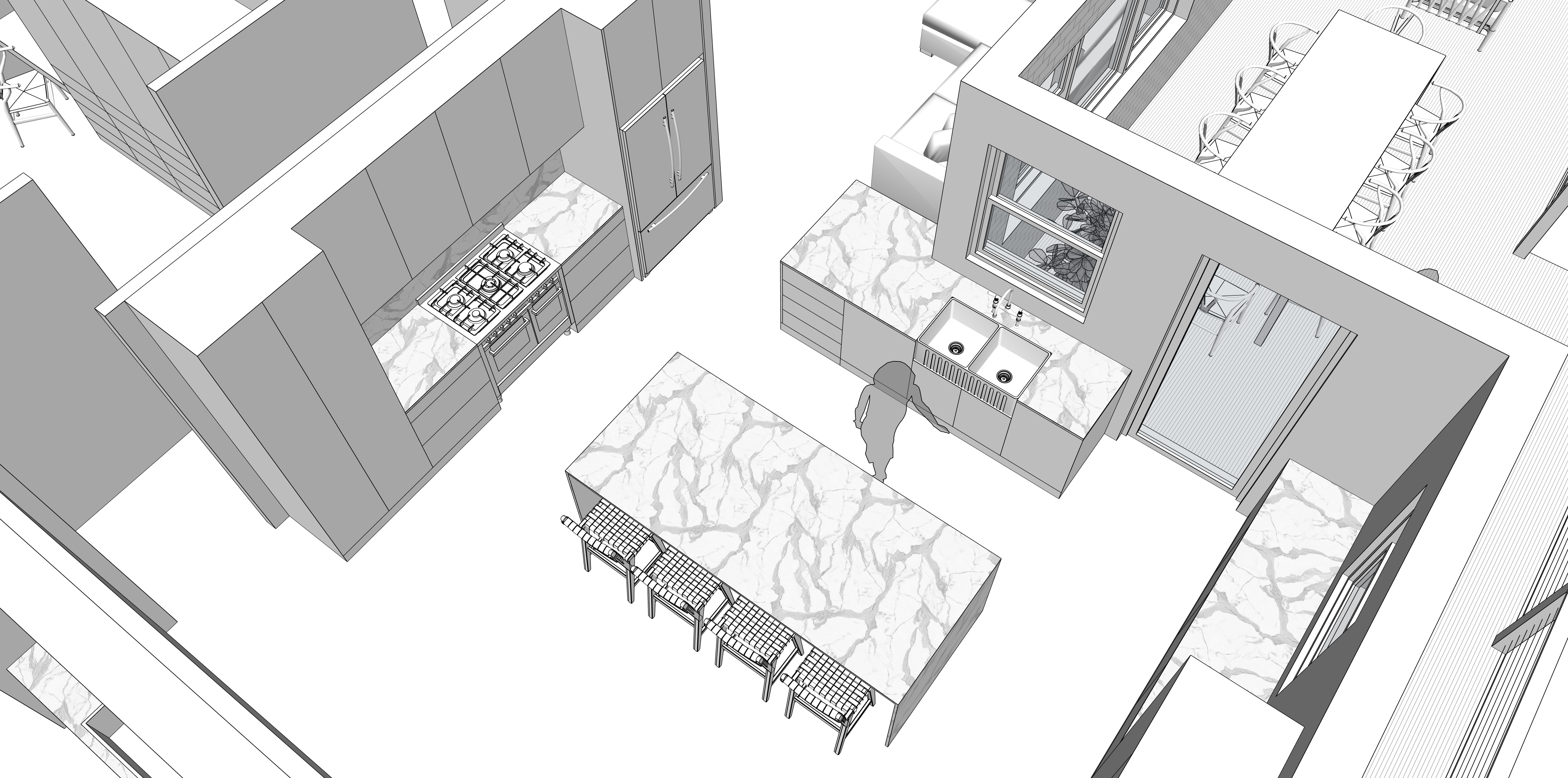 interior from the top marble benchtops neutral palette shaker cabinets chrome tapware tile floors architecture
