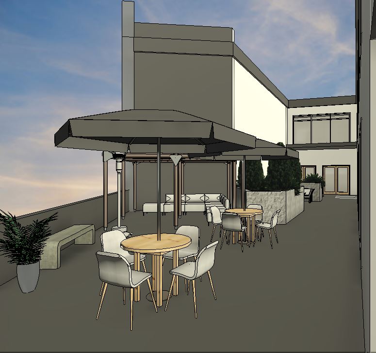 materials and colors to be modern and elegant use shades of grey add people sitting in the furniture
