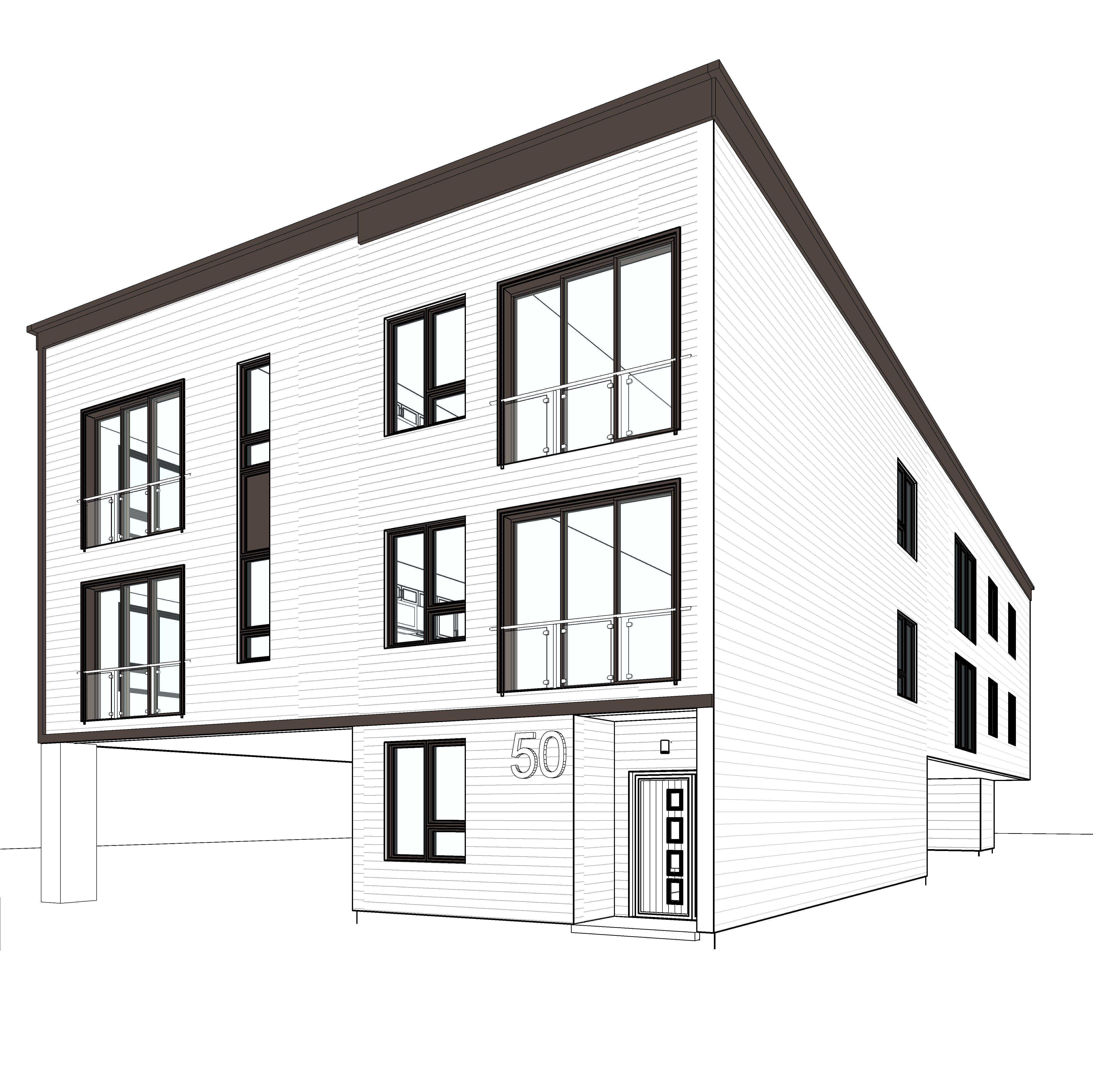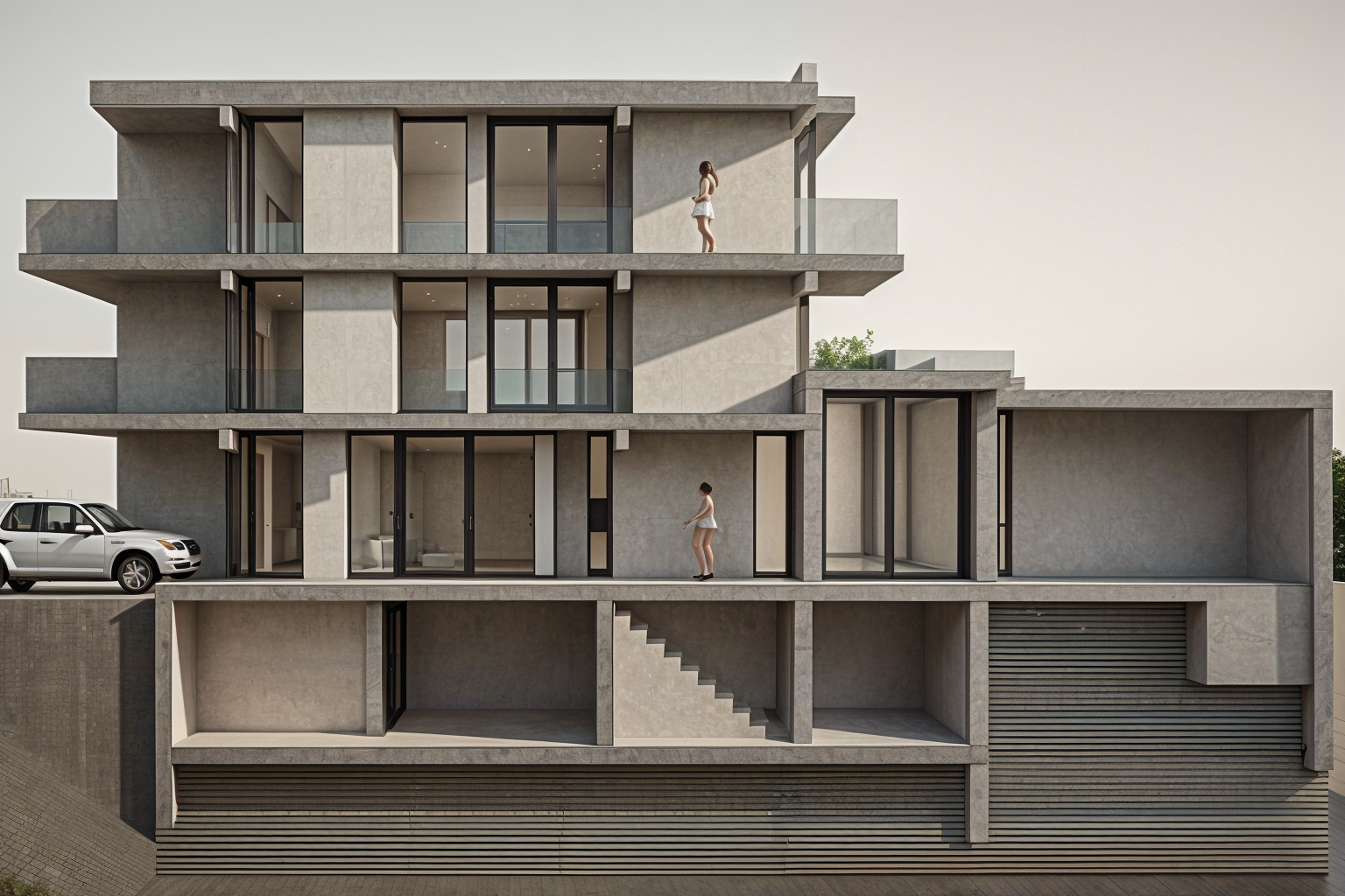 darkish brown wood siding black window and door frames driveway under building and modern landscape for the rest of the floor area interior lighting to be render at sunset lighting exterior led 50 signage light on architecture