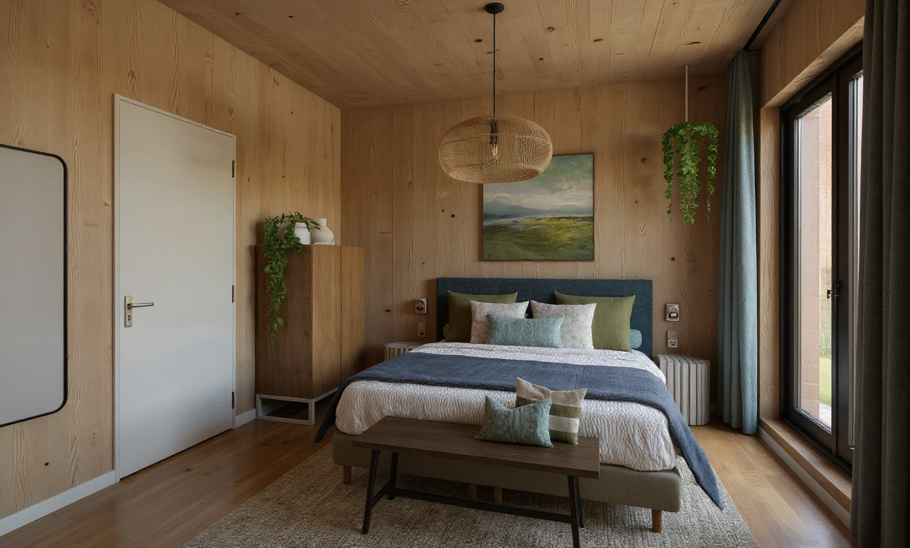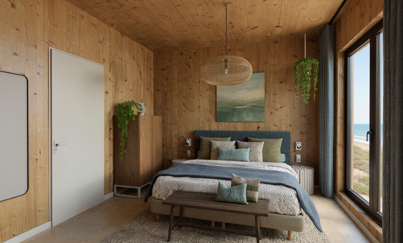 background with more dunes natural lighting turn on the light a bit a bit less knots in the wooden walls and ceiling walls and ceiling are is natural light pine wood