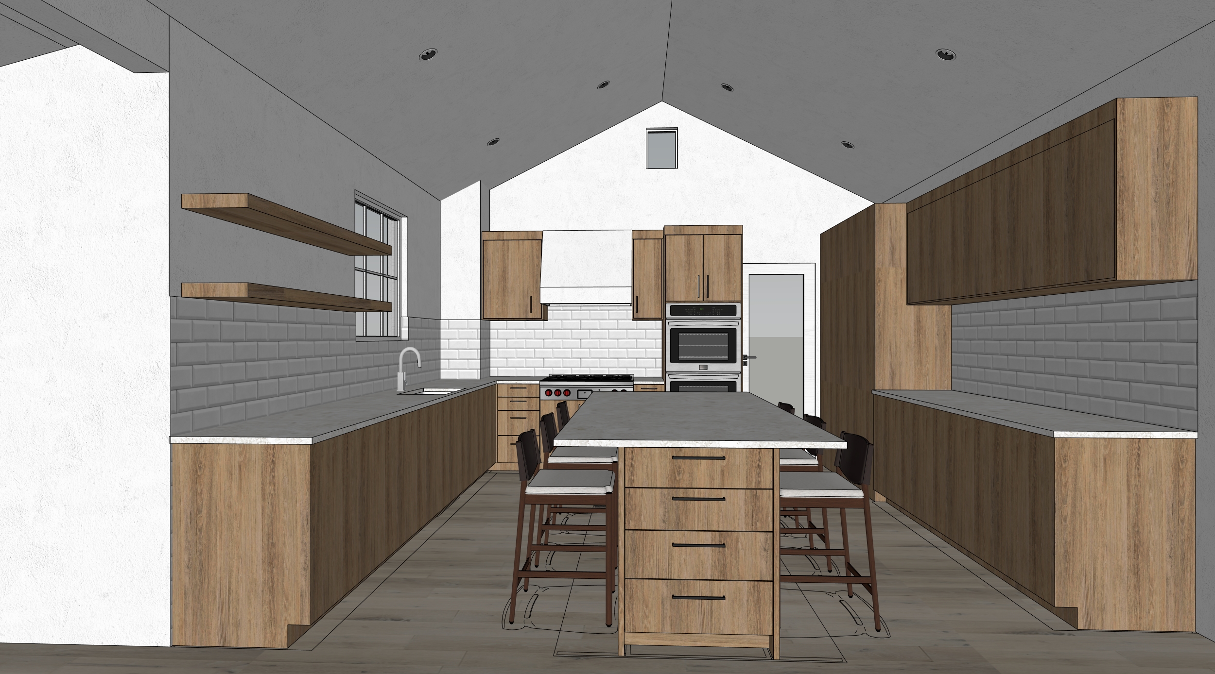 enhance this interior rendering and make it seem as realistic as possible add soft lighting from recessed ceiling cans make everything as realistic as possible without adding too much environment or saturation