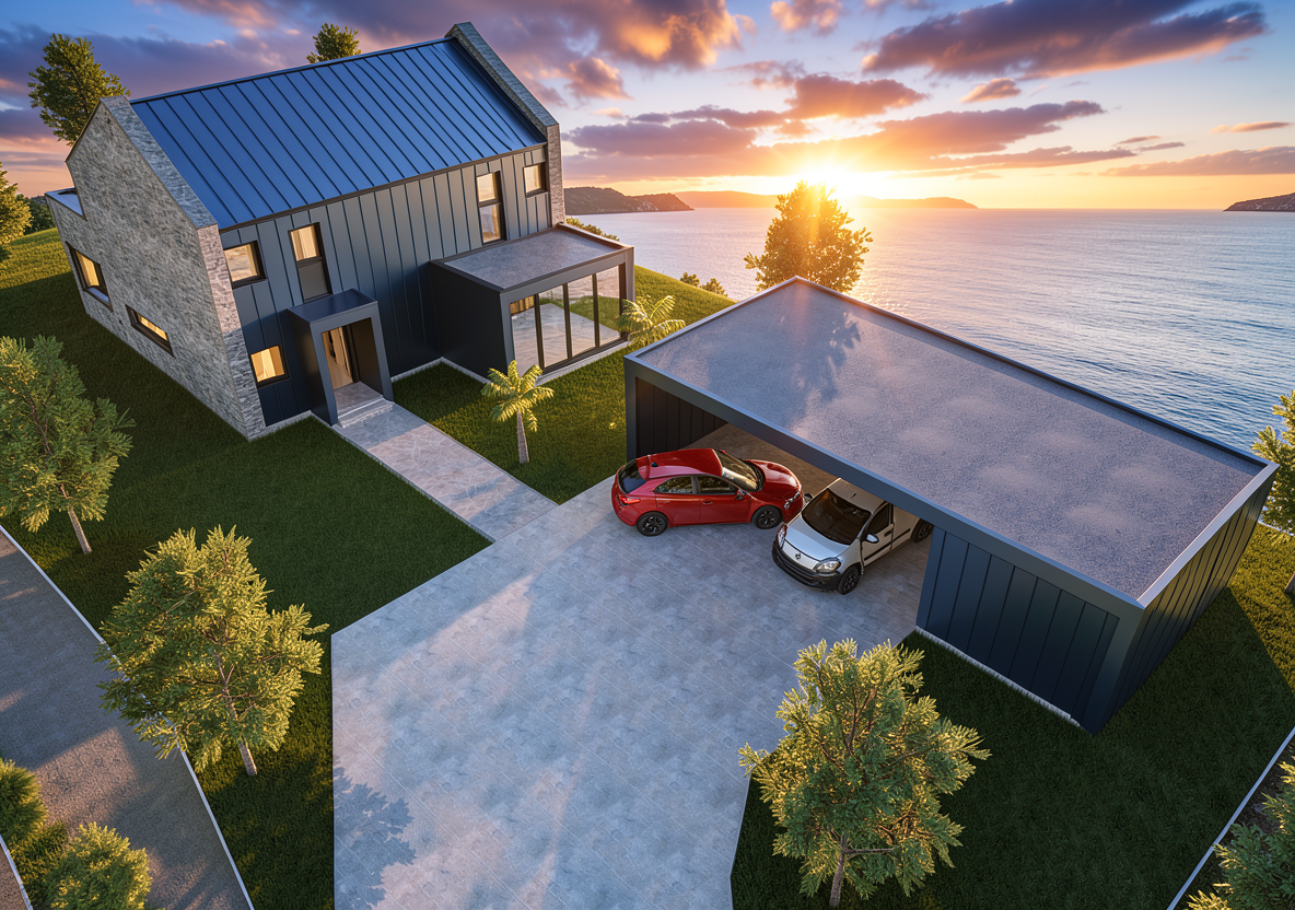 you are a professional image renderer you create the highest grade renderings around and specialize in architectural renderings this is the floor plan of a house create a marketing floor plan that showcases this home design keep the windows as they are where they are keep the doors as they are where they are keep the main structure as it is where it is feel free to change the perspective do not add anything to the structure or furnishings that i have not asked for the surrounding site will be a luxury estate make a paver driveway from the porte cochere to the garage the bathroom in the lower left corner is a laundry room add a pool to the backyard