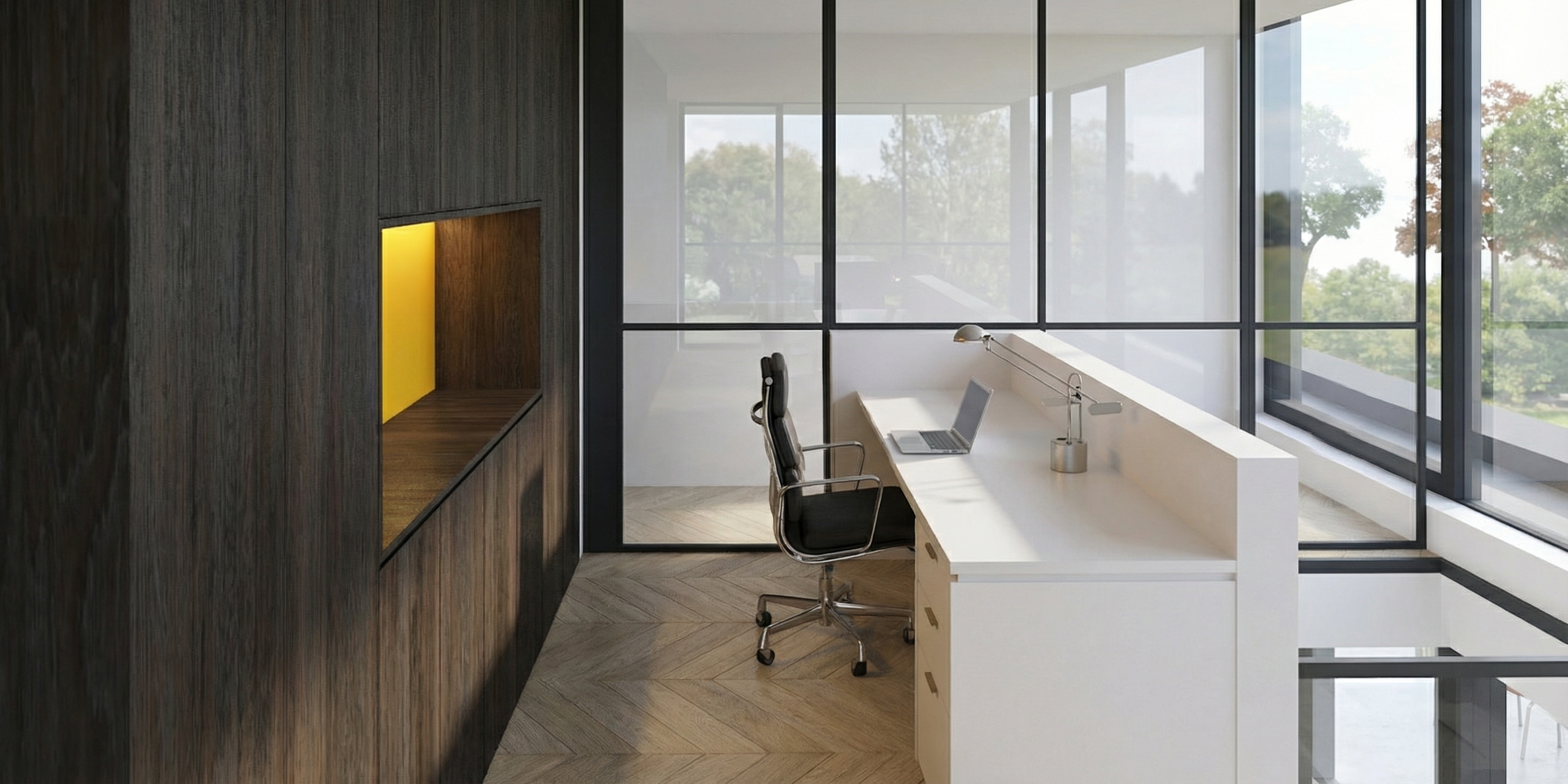 crea un garage di legno da montagna ma di lusso con legno scuro ma non troppo tipo baita con tetto piano facendolo cos che si veda solo di lato