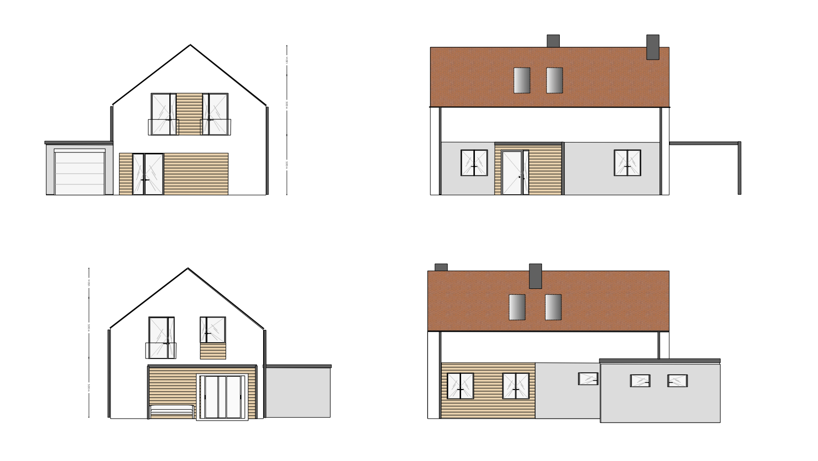 create a 3d view of the buidling based on the exact details of the drawing provided the building should be set in an average european garden daylight produce multiple angles