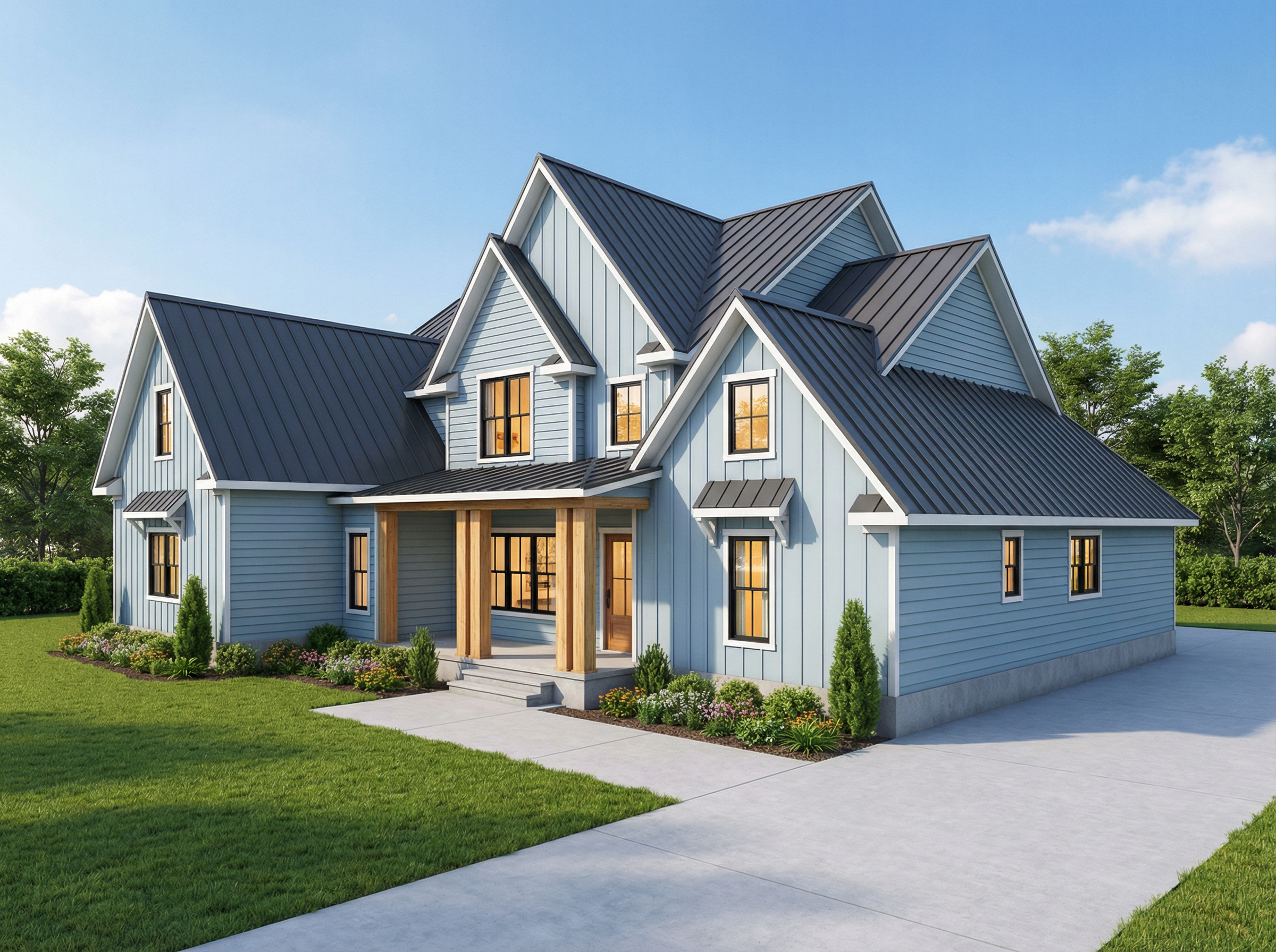 add 2 olive trees on each side of the terrasse and some mediterranean pine trees in the background