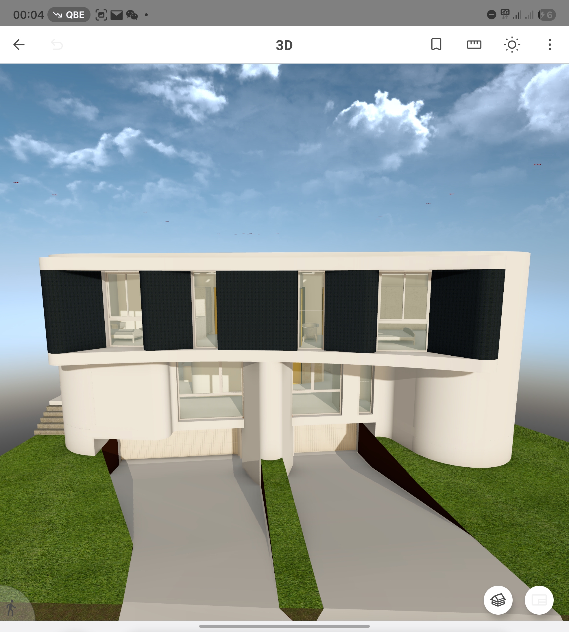 make the black walls upstairs in char timber battens do the same to the garage doors make the window frames black and make arches on the top windows make the driveway cobblestone make the white walls in a textured stucco light white colour and make it super hyper realistic render