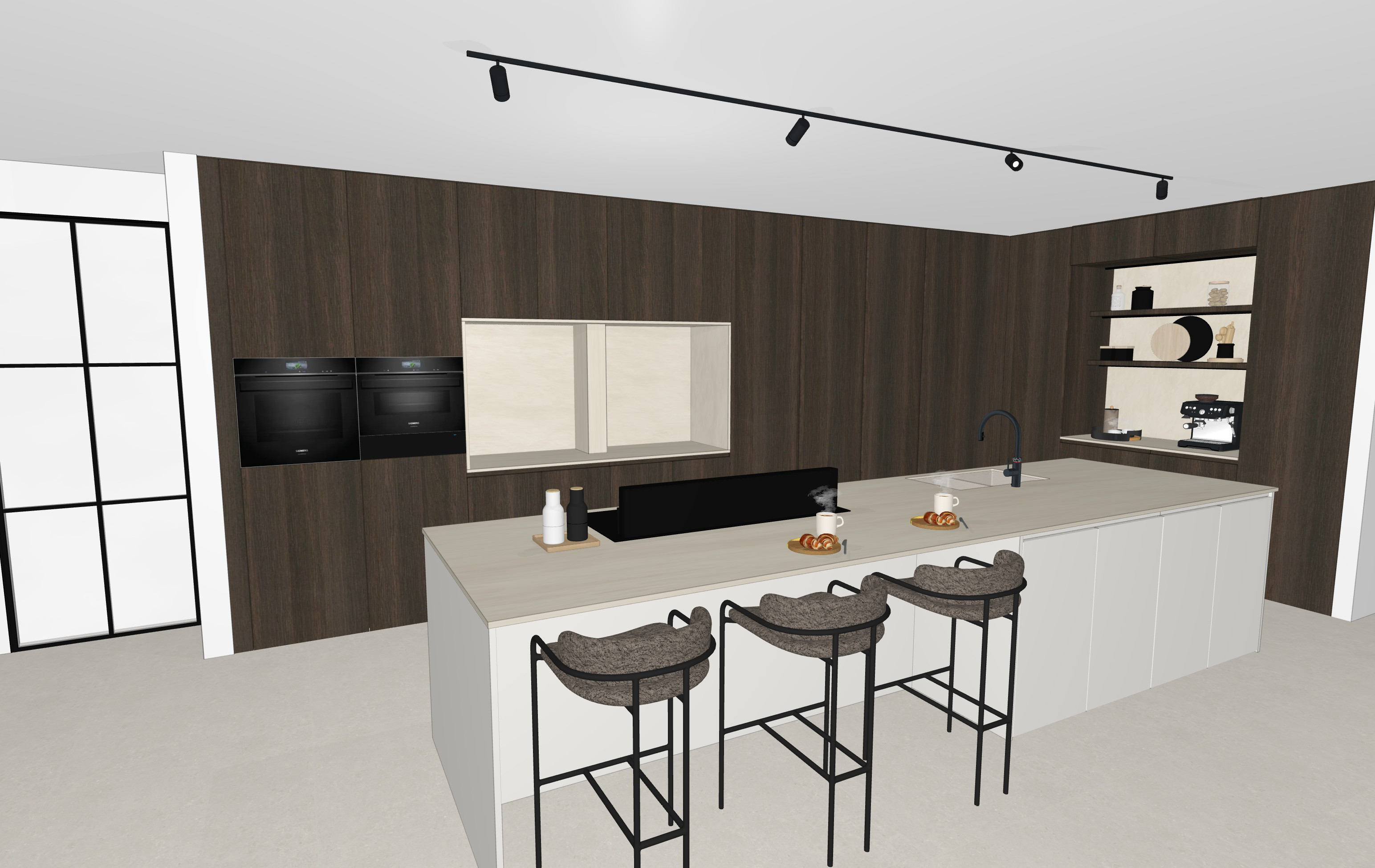 decorate kitchen beige countertop backsplash black appliances leds