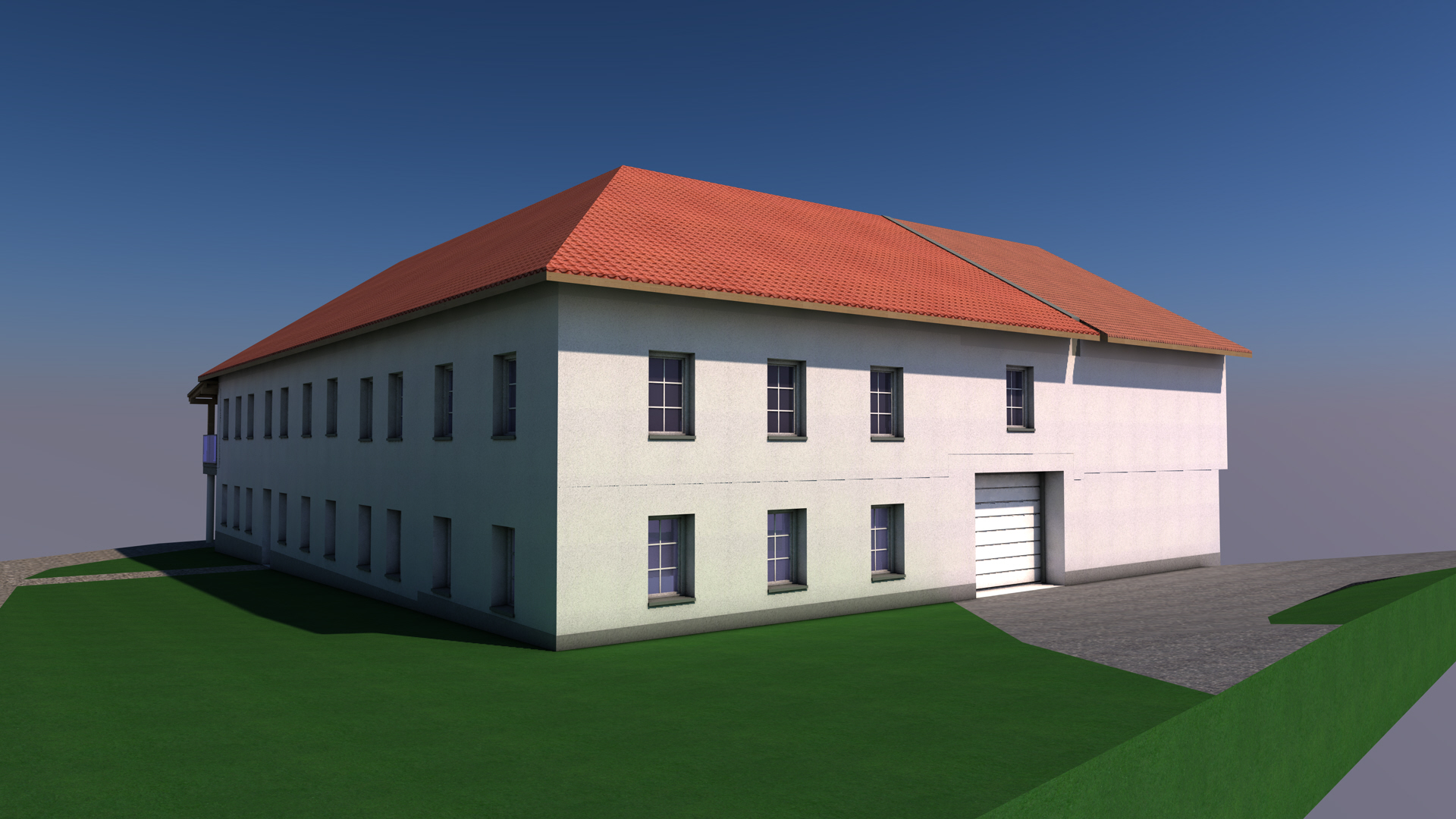 bessere belichtung f ge regenabfallrohre ein f ge zwei b ume und ein paar blumen in die gr nfl che ein auf der stra e soll ein auto stehen die putzfassade soll wei sein mit grauen sockel und grauen fensterfaschen