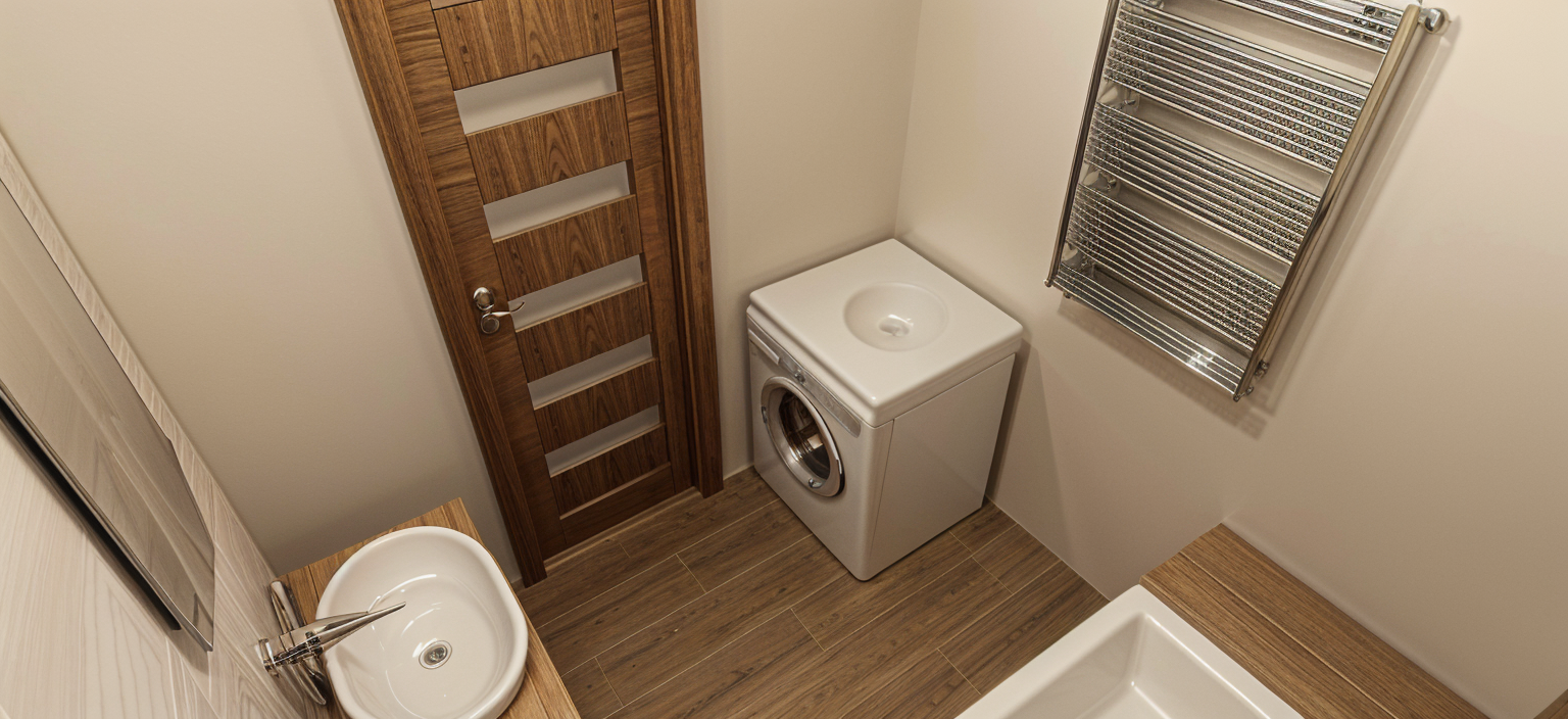e una sala yoga a terra abbiamo un pavimento in parquet in rovere chiaro continuo a liscio sulla parete di destra ci sono in alto tubi in acciaio zincato sulla parete di sinistra ci sono due grandi specchi a forma di arco le pareti sono tutte verdi