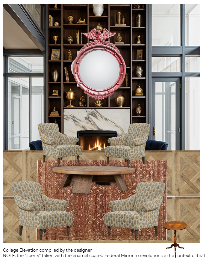 exterior shot transform the provided collage interior image into a high end photorealistic render that reflects the classic bones meets radical soul design ethos this library of collectibles is a lounge and waiting area in the hotel lobby located in an upscale boutique extended stay hotel in boston s financial district the final image should express a warm golden hour atmosphere with soft glowing highlights and an elevated sense of boston heritage interpreted through contemporary craftsmanship and financial district sophistication the furniture should be arranged in such a way that spatially makes sense add patrons to make the scene appear even more hyper realistic ensure that the materials all feel placed in reality and are scaled appropriately