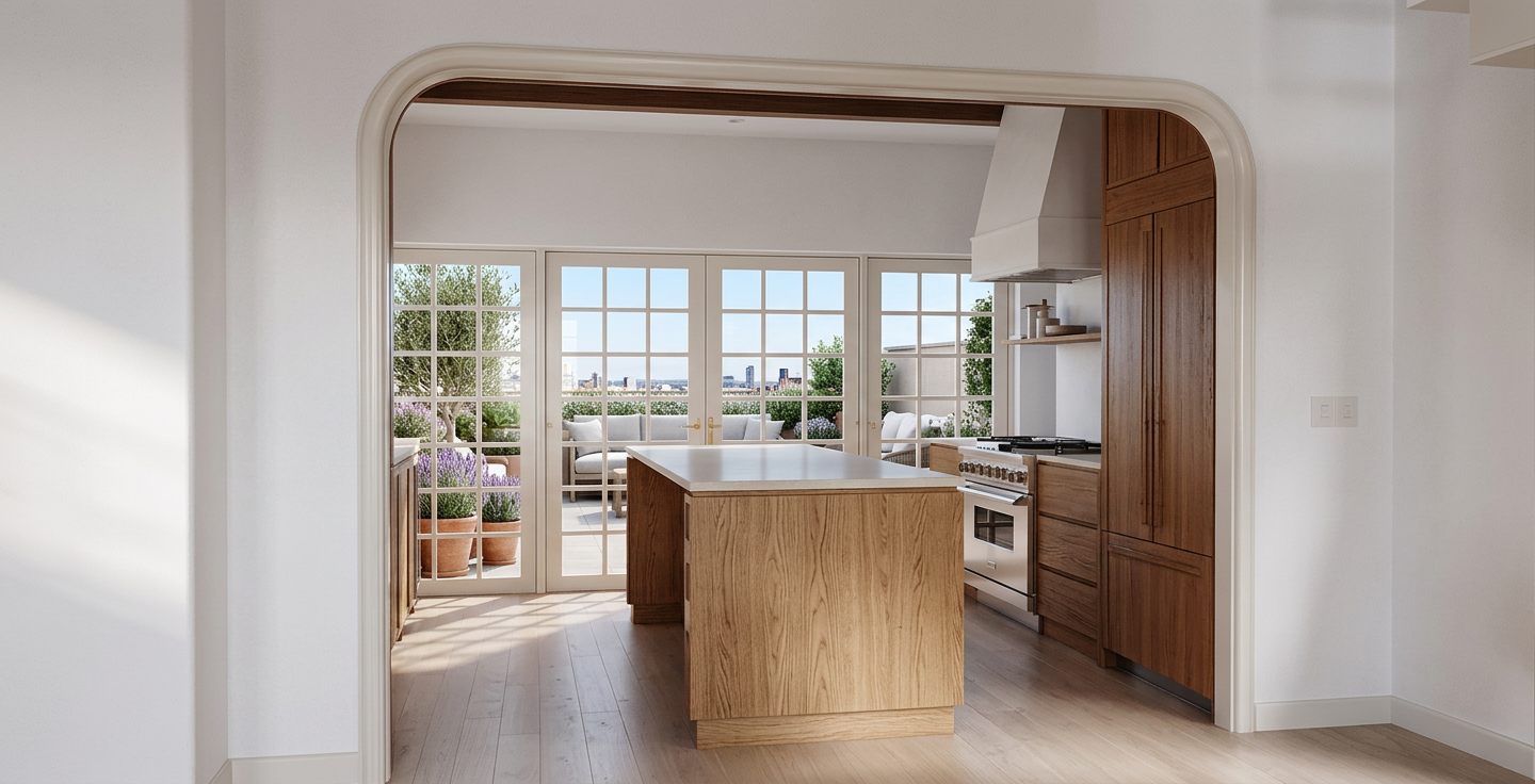 blur outside scene lighten kitchen furniture wood to lighter oak