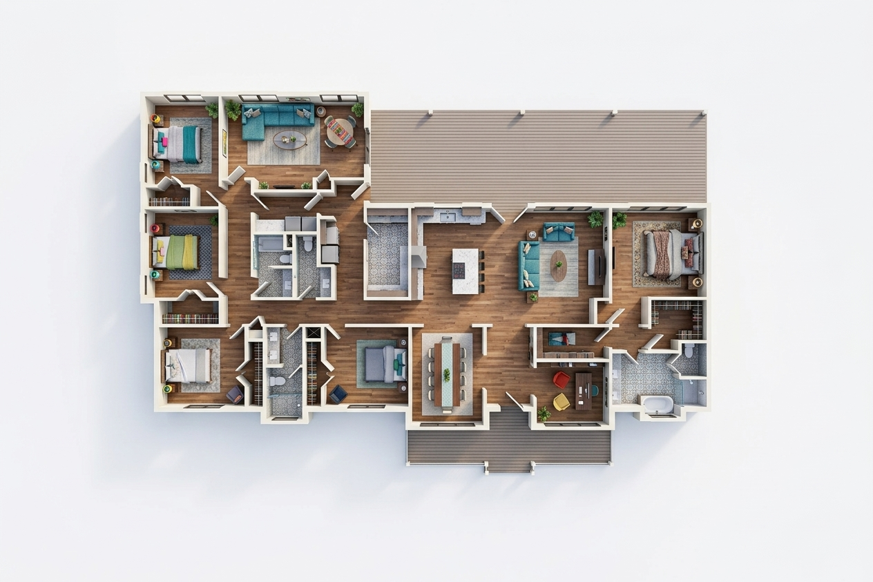 using the provided architectural elevations as reference generate one realistic 3d exterior perspective rendering of the residence the image must be a single 3d perspective view only strict requirement the building geometry and volumetry must be exactly identical to the provided elevations do not modify roof shapes do not change roof slopes do not alter the entrance volume do not change window or door sizes or positions do not reinterpret proportions this is a strict architectural translation not a redesign of the structure if unsure prioritize accuracy over aesthetics apply horizontal clapboard siding clin only on the side elevations for the front fa ade propose a modern and original material combination including black board batten siding preferred wood accents fiber cement or panel systems dark metal details important details the front porch gallery must be made of treated wood the columns supporting the small entrance roof must be treated wood the foundation must remain standard light grey concrete do not cover or modify the foundation camera perspective 3 4 front perspective view eye level camera realistic human perspective show the entrance clearly lighting daytime natural soft shadows environment simple landscaping no distractions rendering style ultra realistic architectural visualization quality final rule respect the original elevations exactly no creative changes to the building form are allowed