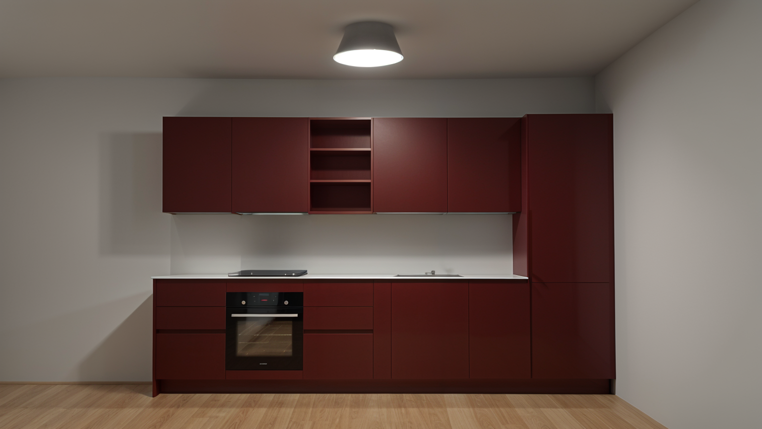 convert this black and white 2d architectural elevation drawing into a photorealistic rendering of a modern craftsman style home apply exterior finishes and colors to match the reference house muted green shingle siding light stone accents on the lower portion cream colored trim and black framed windows and doors use a dark charcoal roof with dimensional shingles add a clean concrete driveway leading to dark gray garage doors with simple rectangular windows include a fresh green lawn small landscaped shrubs with rock edging and one young tree in the yard ensure realistic textures natural daylight and a bright blue sky with light clouds similar to the reference photo architecture