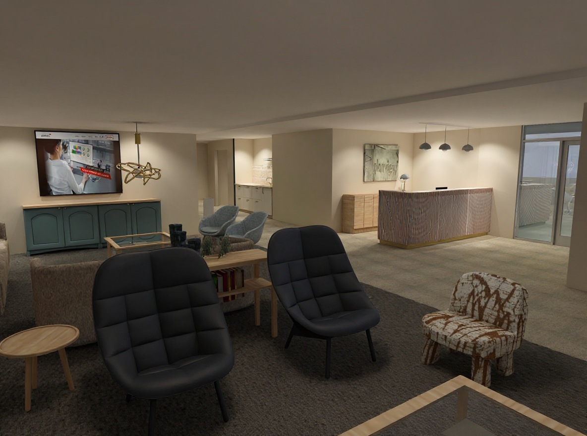 add some realistic spotlights under every ceiling change light on facade for realistic light make it a little brighter outside