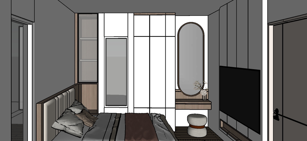 render senyata mungkin tanpa mengubah bentuk dan material tambahkan indirect light di sekeliling cermin