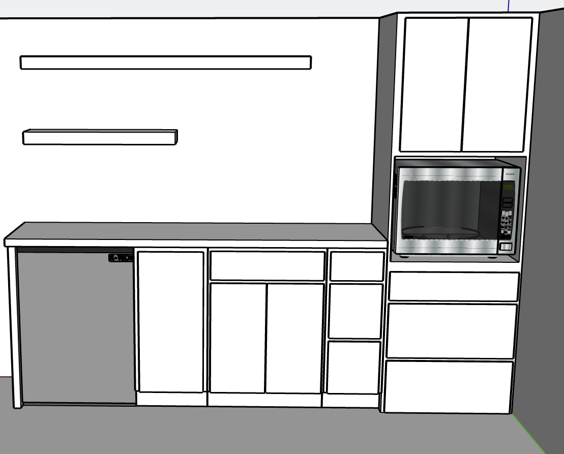 interior shot make this a nice cozy kitchen add a sink and make the floating shelves and cabinets a semi dark hardwood add brushed nickel handles to all the doors and drawers