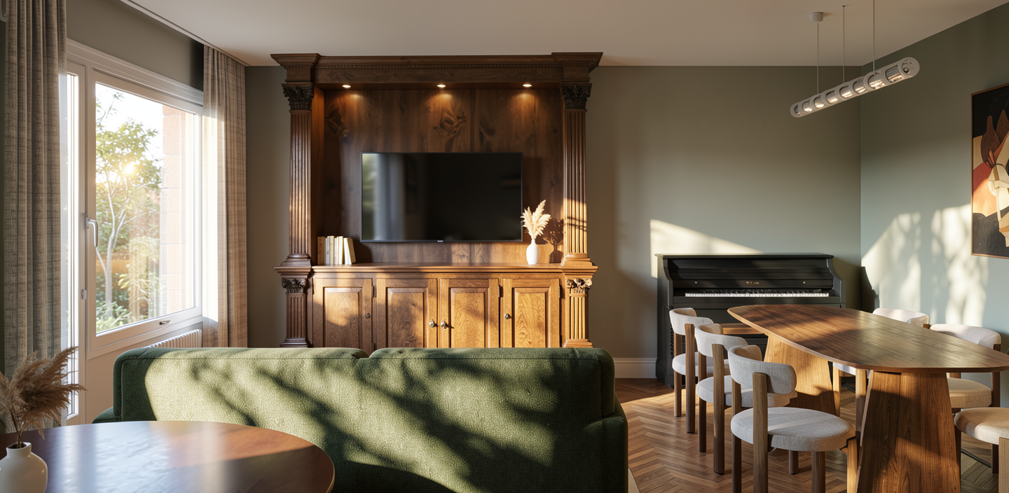 ilimuna o natural com sol brilhando na janela de vidro sombra das arvores repleti na casa e no chao relva verde e macia vaos com vidro e caixilharias na cor preta parede a cor branco coroamento da residencia a cor preta antracite inserida no meio urbano de casas com estilo mediterraneo vegeta o sao pinheiros e larajeiras