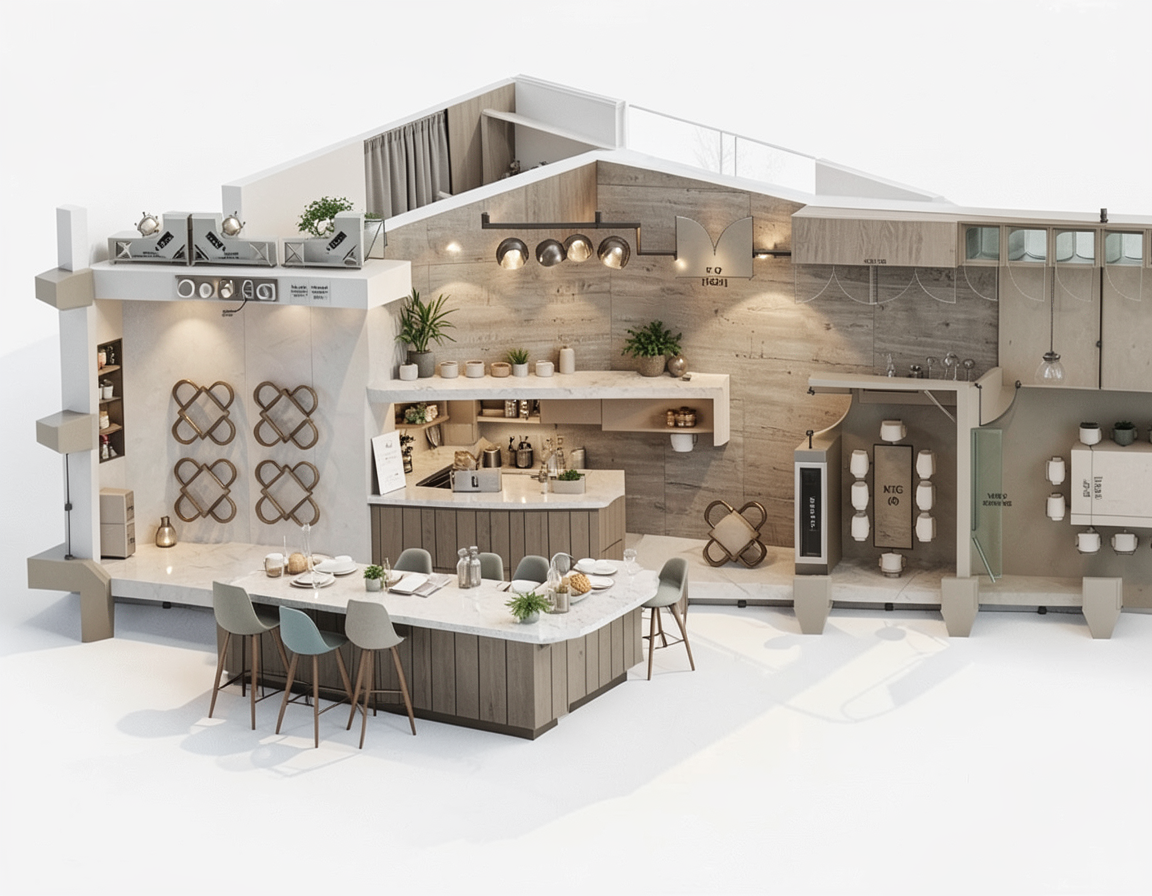 plan view of corporate office kitchen area with center bar keep finishes neutral with colours to look like the keg steakhouse flooring antique oak in chevron pattern bartop to be charcoal colour furniture to be leather