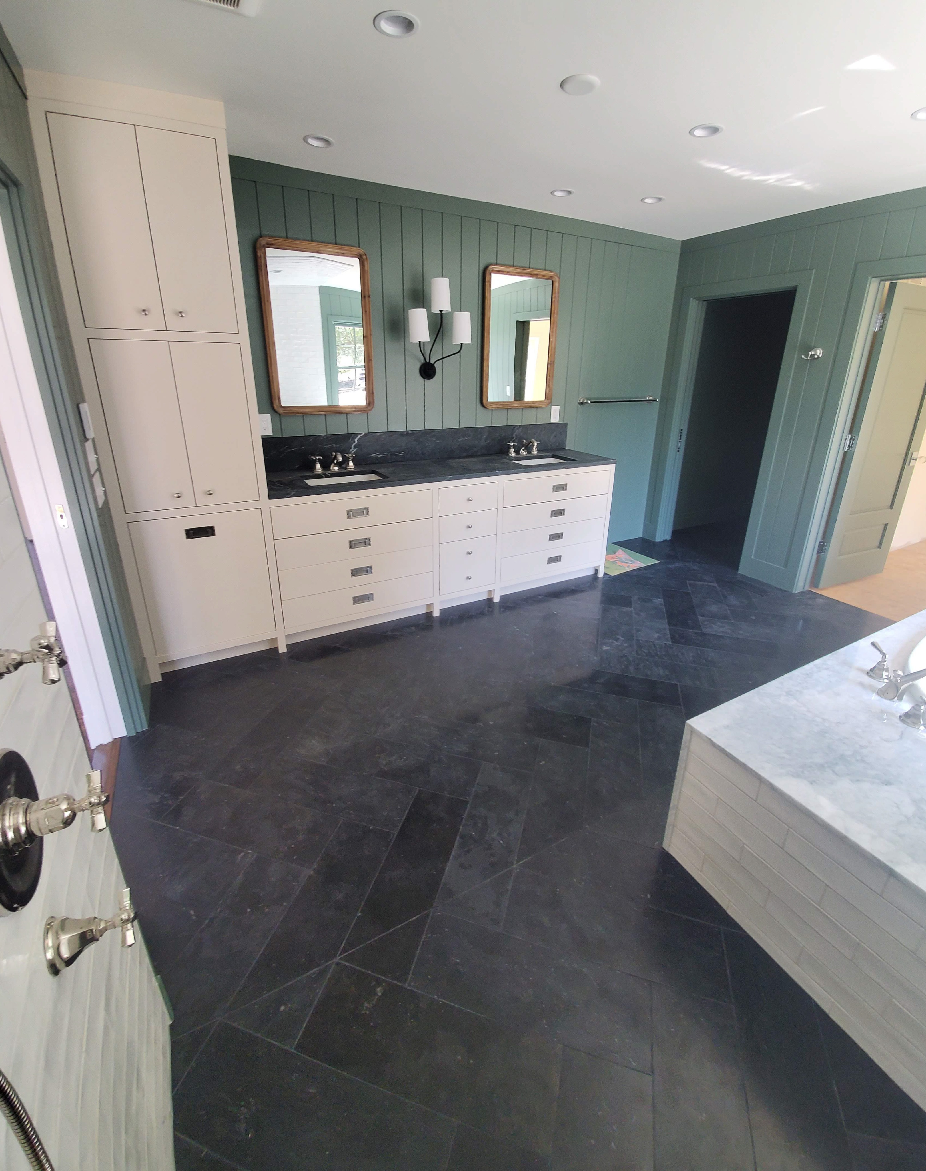 zoom in and adjust frame to create level image and adjust focus for architectural publication keeping hardware and plumbing fixtures the same color