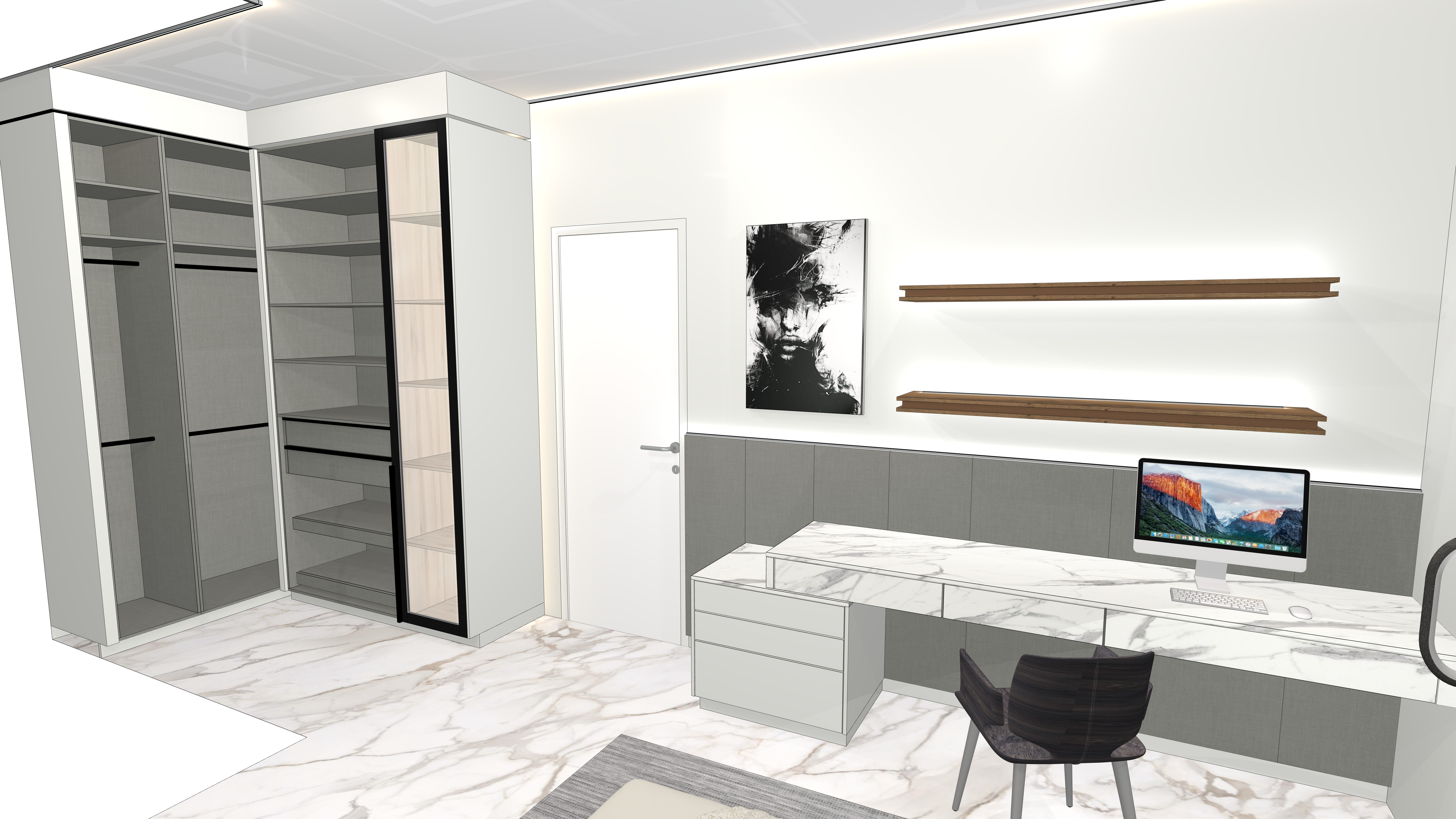 please add led effect to pendants please make grey wardrobe doors matt leave everything else as is