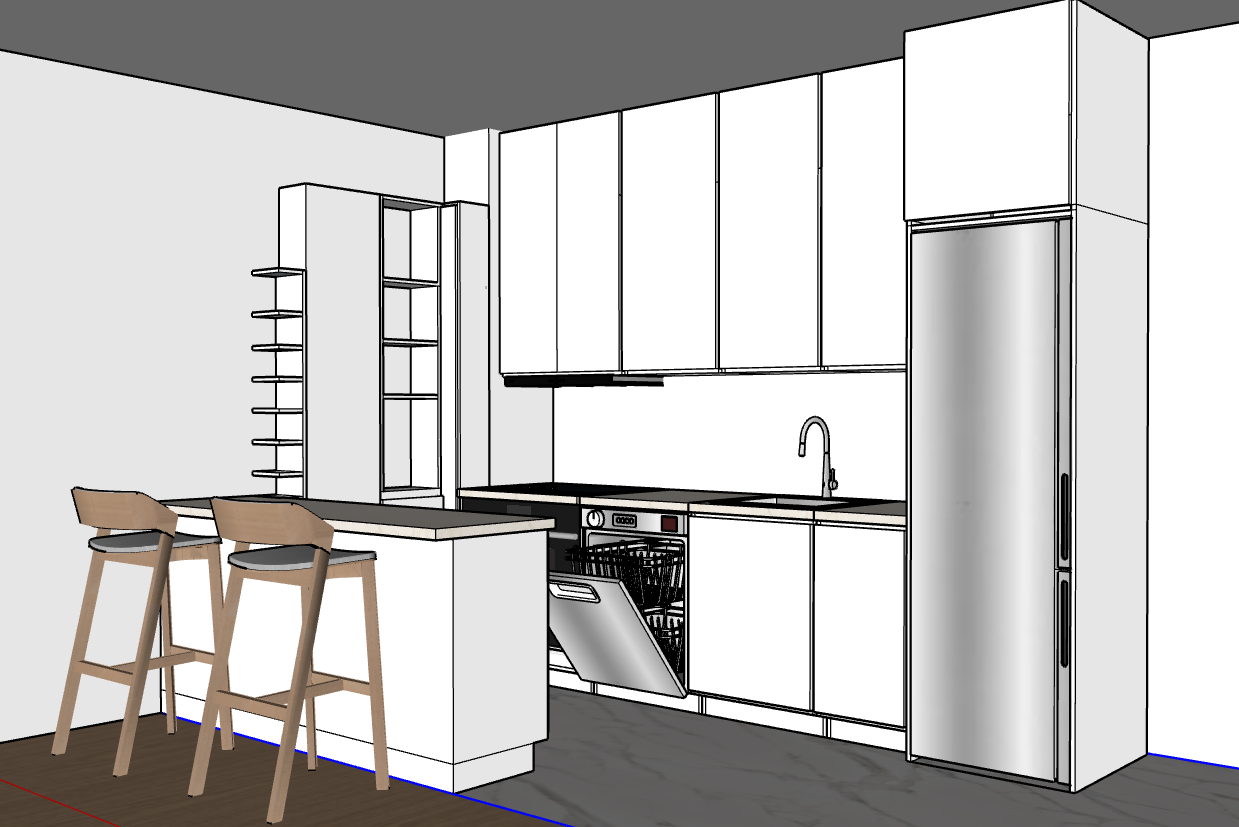 render a modern kitchen scene with a sleek minimalist design use a soft glossy white for the cabinetry to create a clean and sophisticated look the countertop is a luxurious light beige marble with subtle veining bringing elegance to the space incorporate a stainless steel finish for the oven stovetop and dishwasher for a modern industrial touch the backsplash should be a smooth subtle gray marble to enhance the contemporary atmosphere include a polished chrome faucet with a deep reflective sink to add sparkle the lighting should be soft and ambient casting gentle shadows for a cozy inviting feel