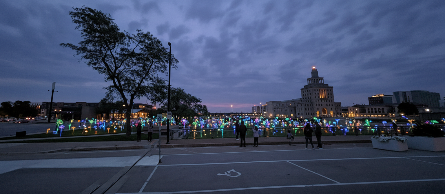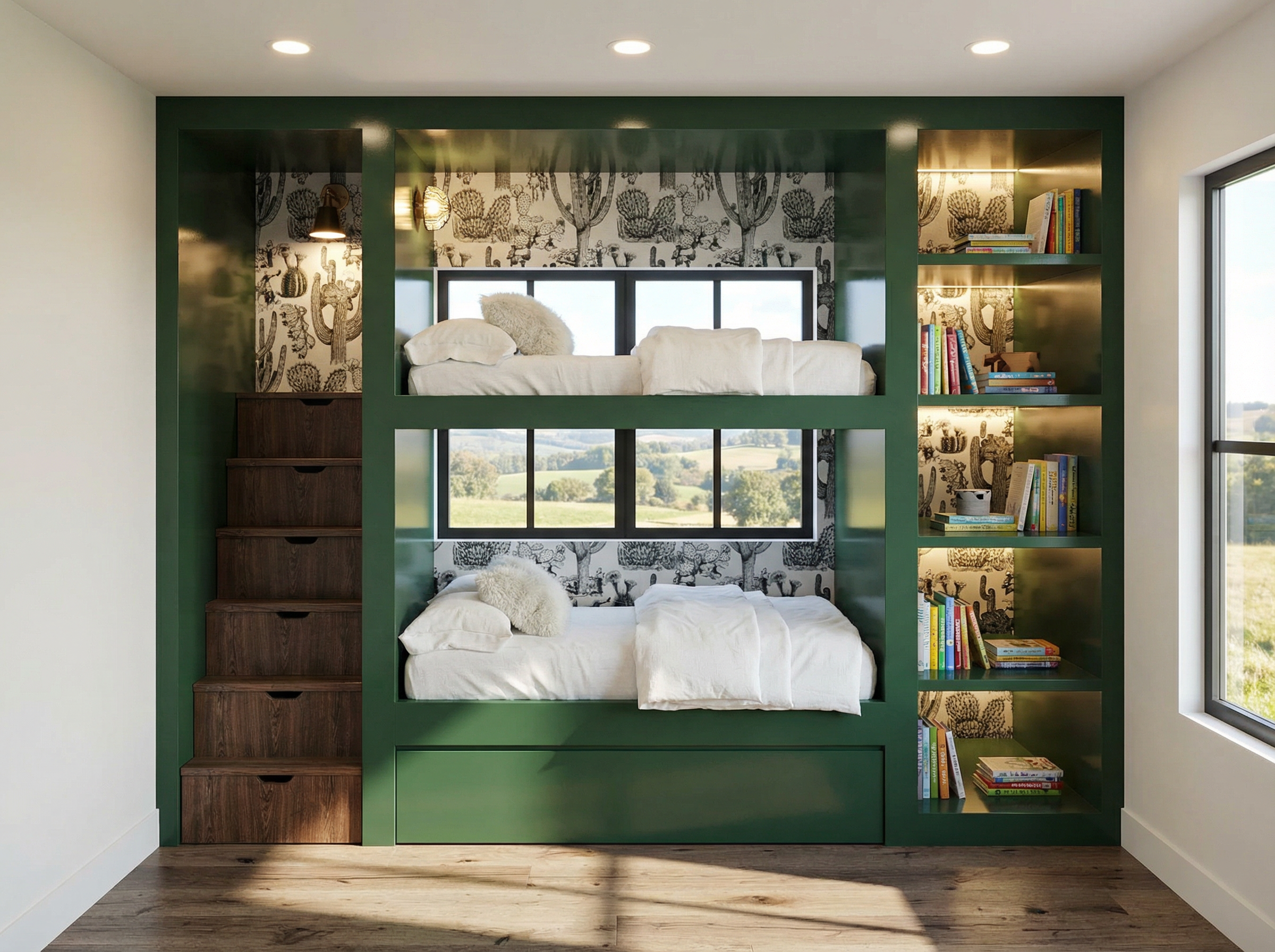 adds a cityscape behind the window rays of sunlight and a wooden counter