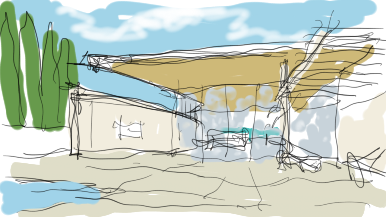 develop as contemporary architecture blue sky with soft clouds rangitoto island auckland in the bakcgr ound seen through the large glass facades cedar boards ceiling rammed earth wall on the left