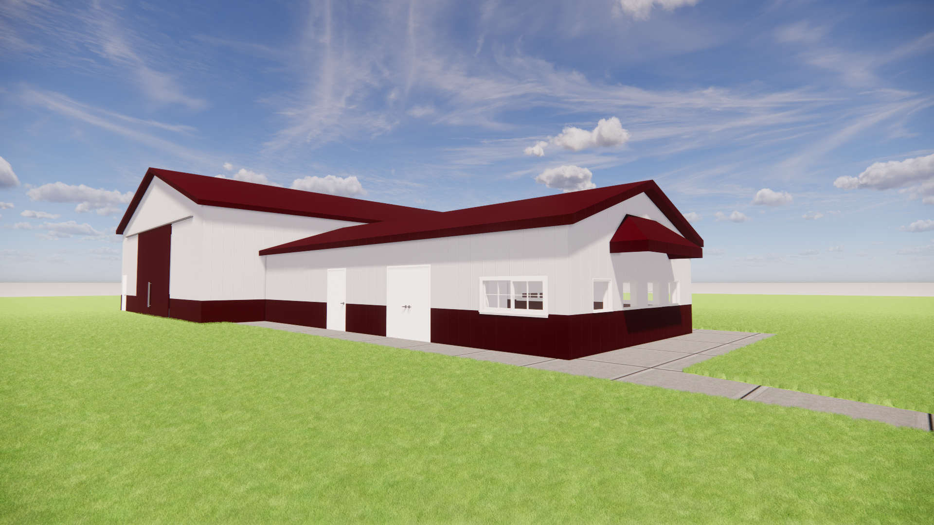 add some people on the sidewalk and picking up food from the window add vegetation in the background change the grass areas to farmland texture adjust lighting change sidewalk texture to make it accurate