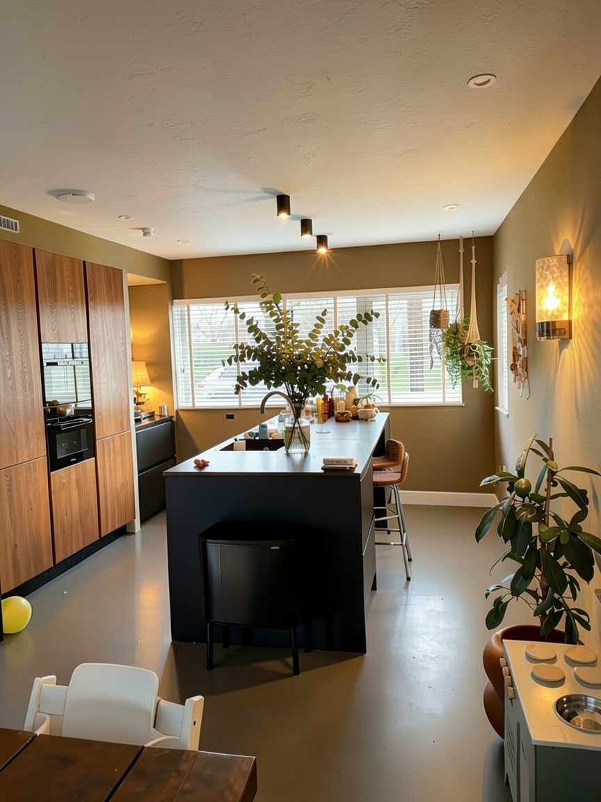 render a photorealistic interior visualization keep the materials and furniture layout exactly as shown in the image add little bit of minimalistic decorations