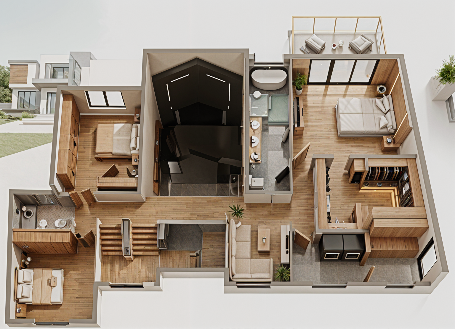 bring subtle life to this rendering of a bathroom with natural light coming from the window elegant details that fit the feeling of a serene bathroom in the morning with simple elements like soap towels and plants