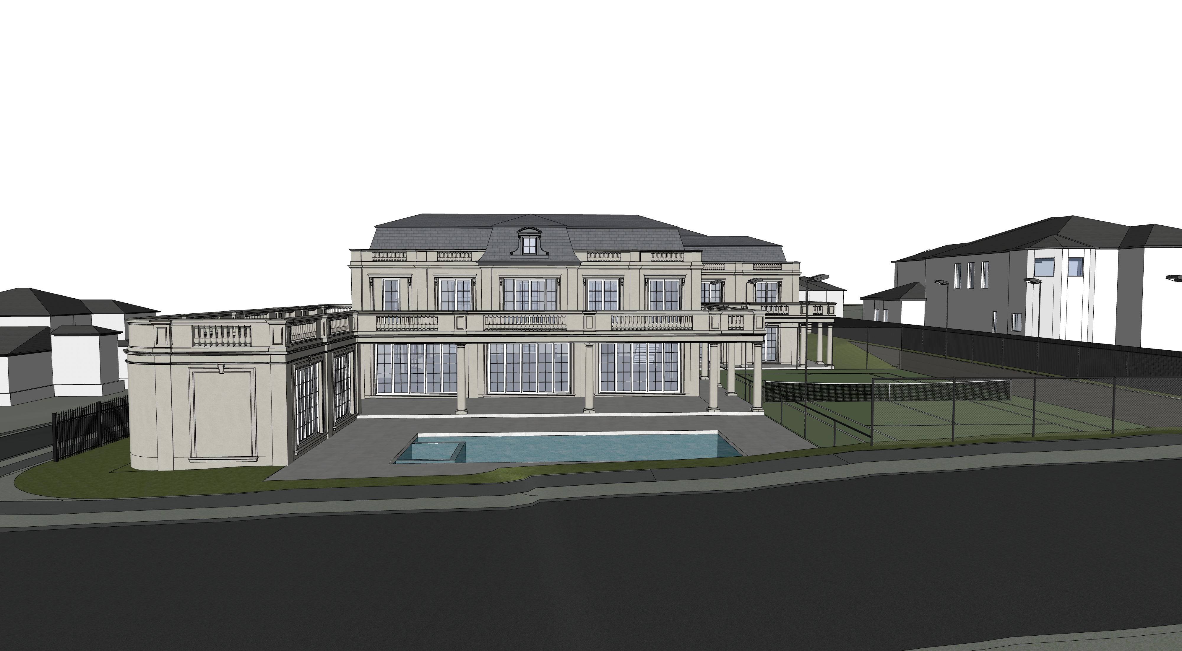 elegant french classical home with slate roof ultra realistic interior lighting effects no chimney