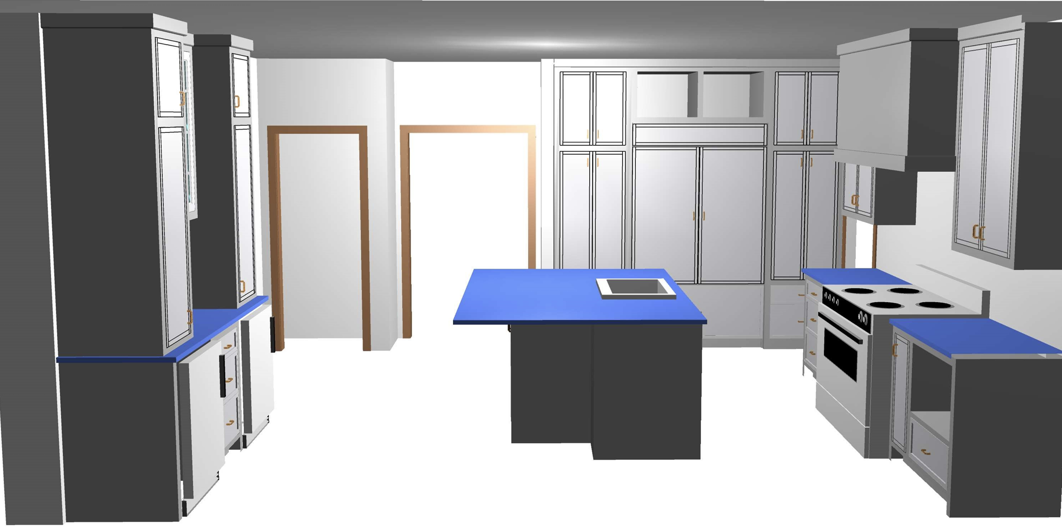 interior shot cabinets are a dark blue gray paint island is stained pecan color countertops are quartz