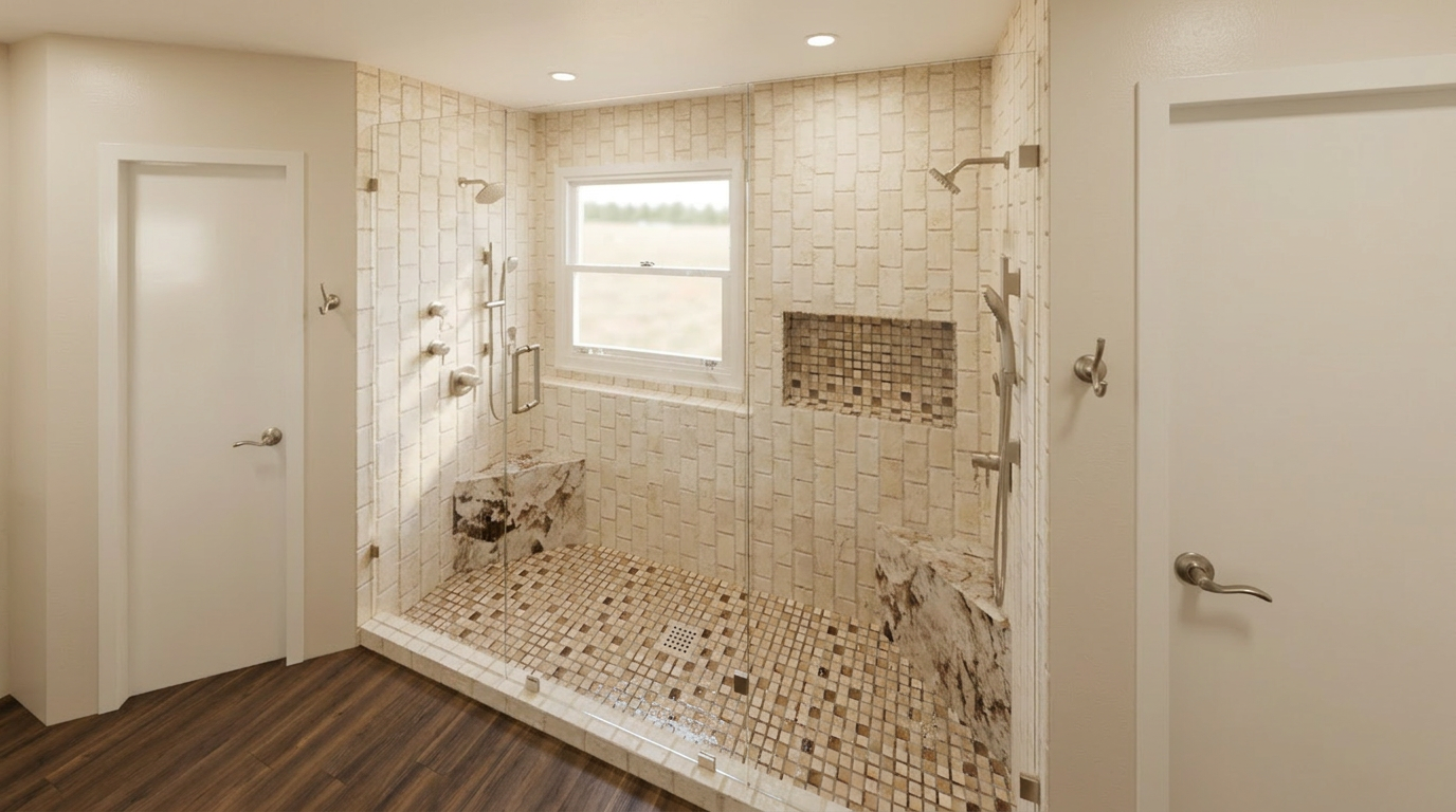 enhance the quality to hyper realistic create a warm and cozy atmosphere add a hedge that starts at the end of the path and runs in a straight line perfectly aligned with the path s vanishing point extending all the way to the property boundary